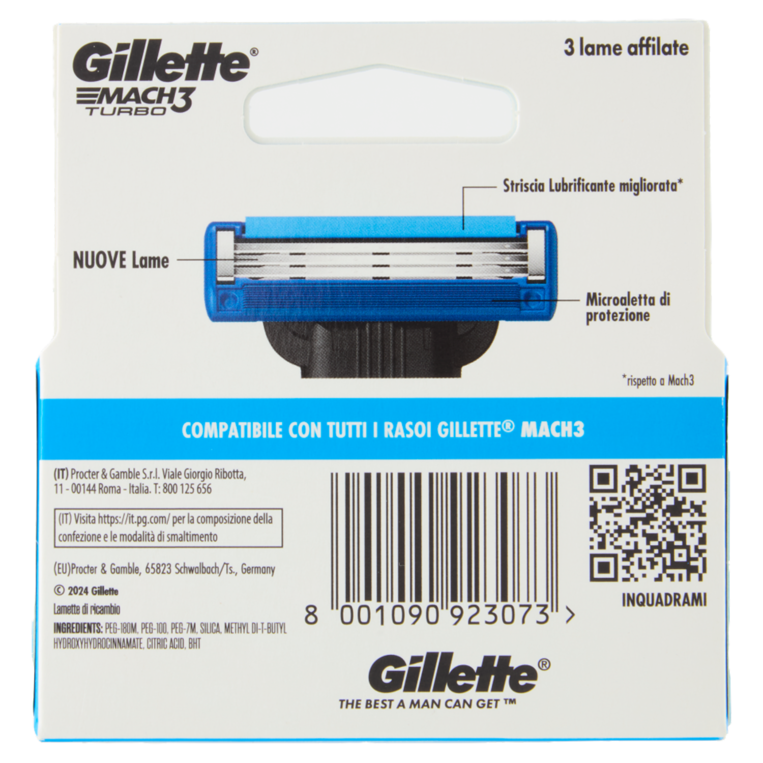 Gillette Mach3 Turbo Lamette di ricambio per Rasoio da Uomo, 5 Ricariche