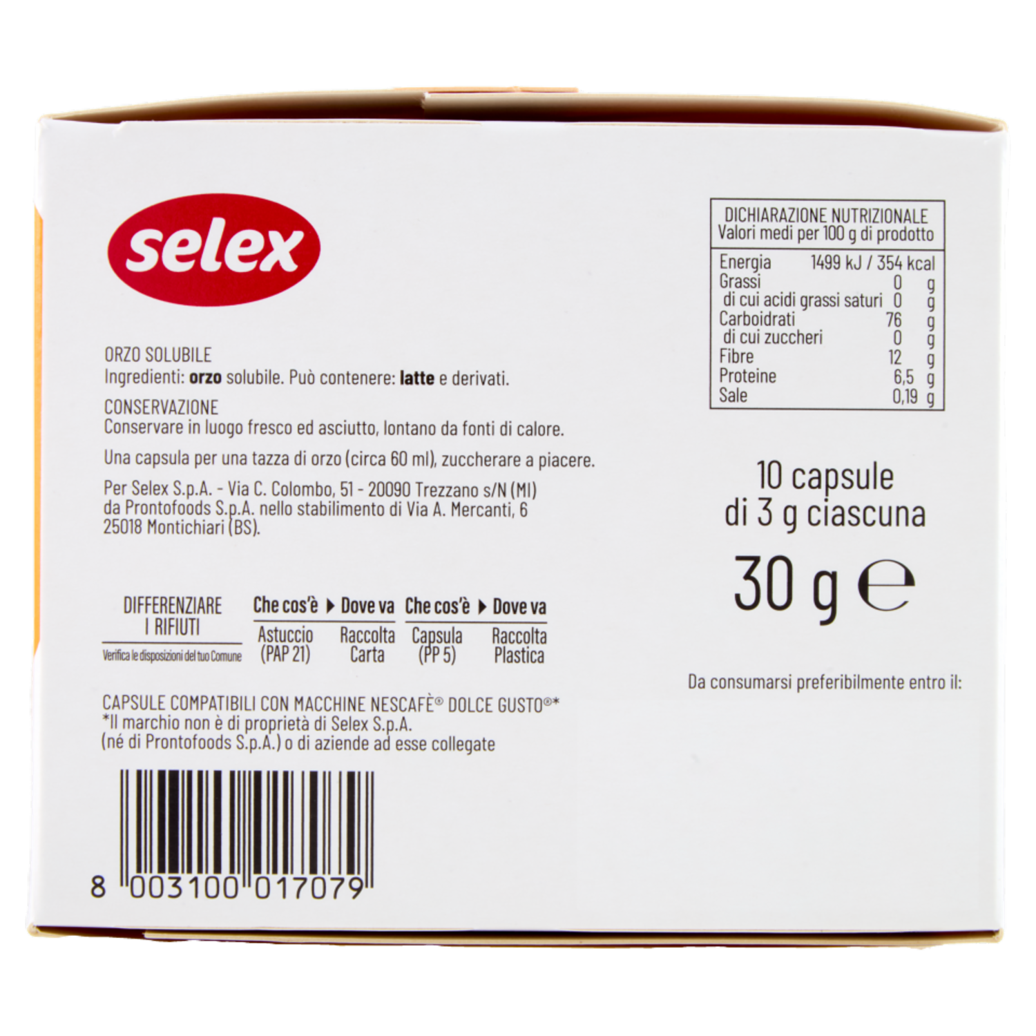 Selex Orzo Espresso in Capsule Compatibili Dolce Gusto 10 pezzi