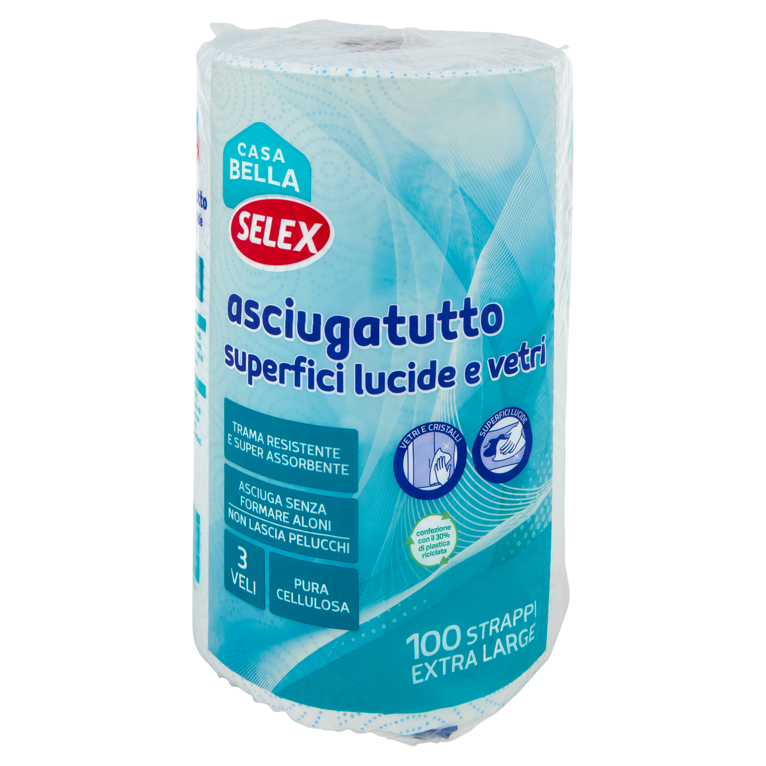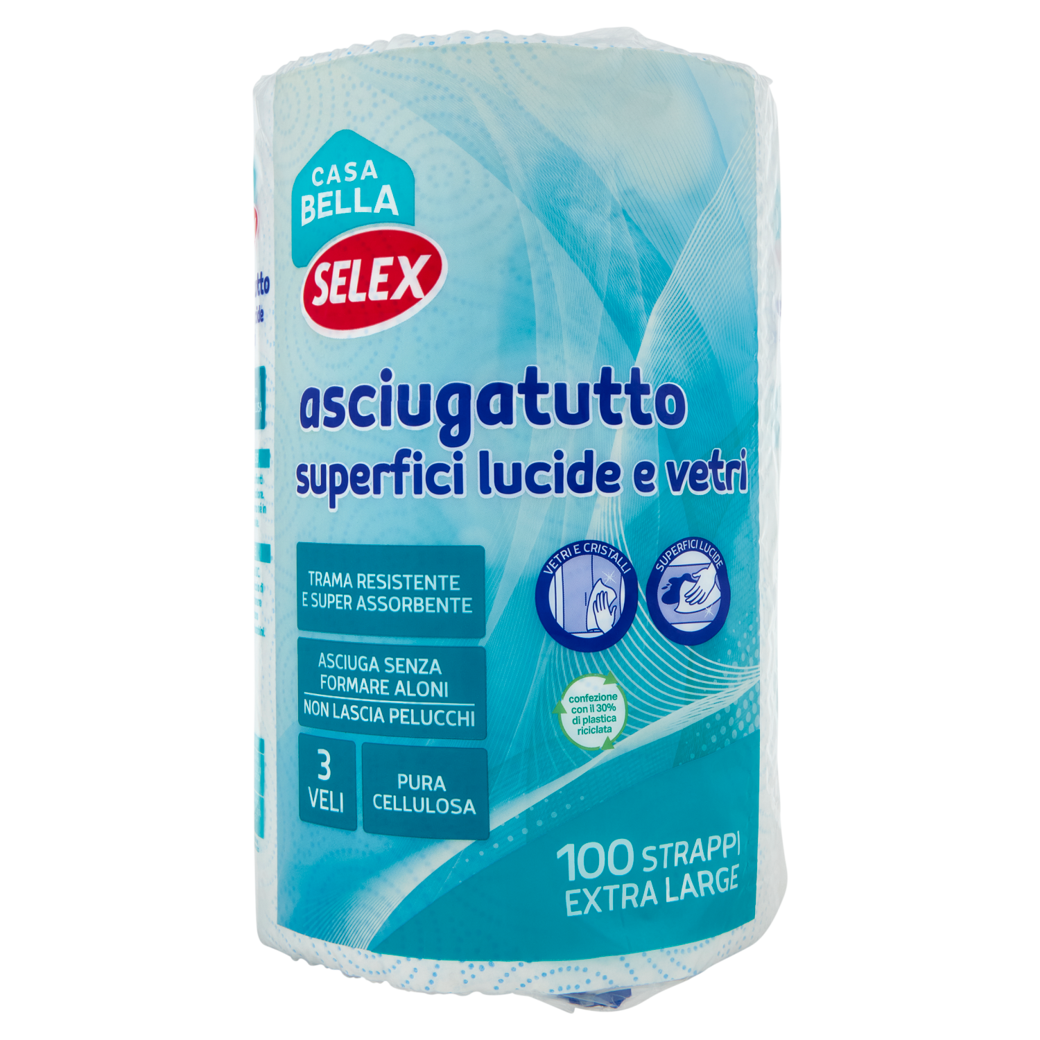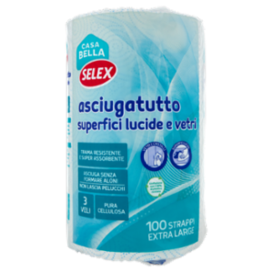 Selex Casa Bella Asciugatutto 3 Veli per Superfici Lucide e Vetri Bobina 100 Strappi