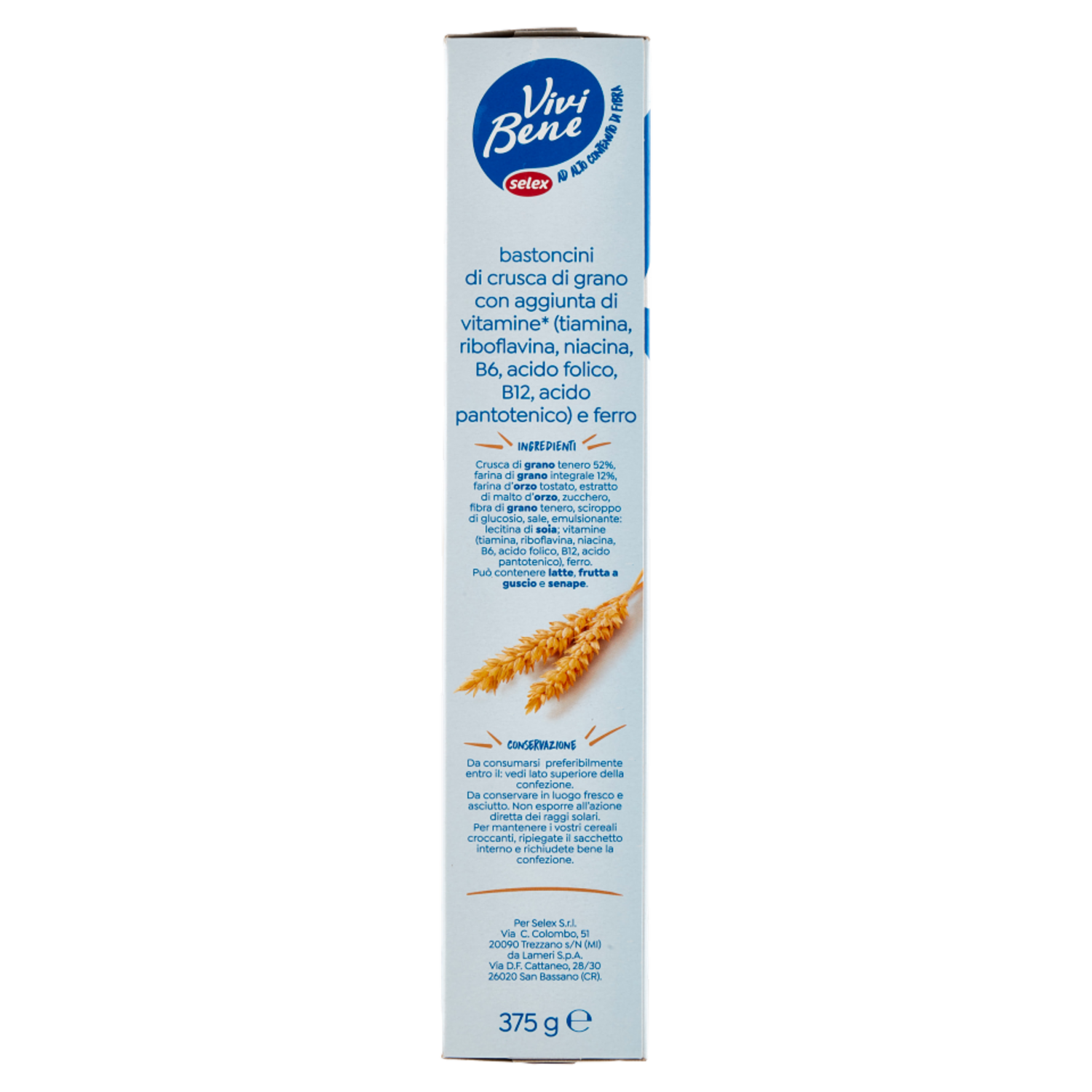 Selex Vivi Bene Bastoncini di Crusca di Frumento ad Alto Contenuto di Fibre 375 g