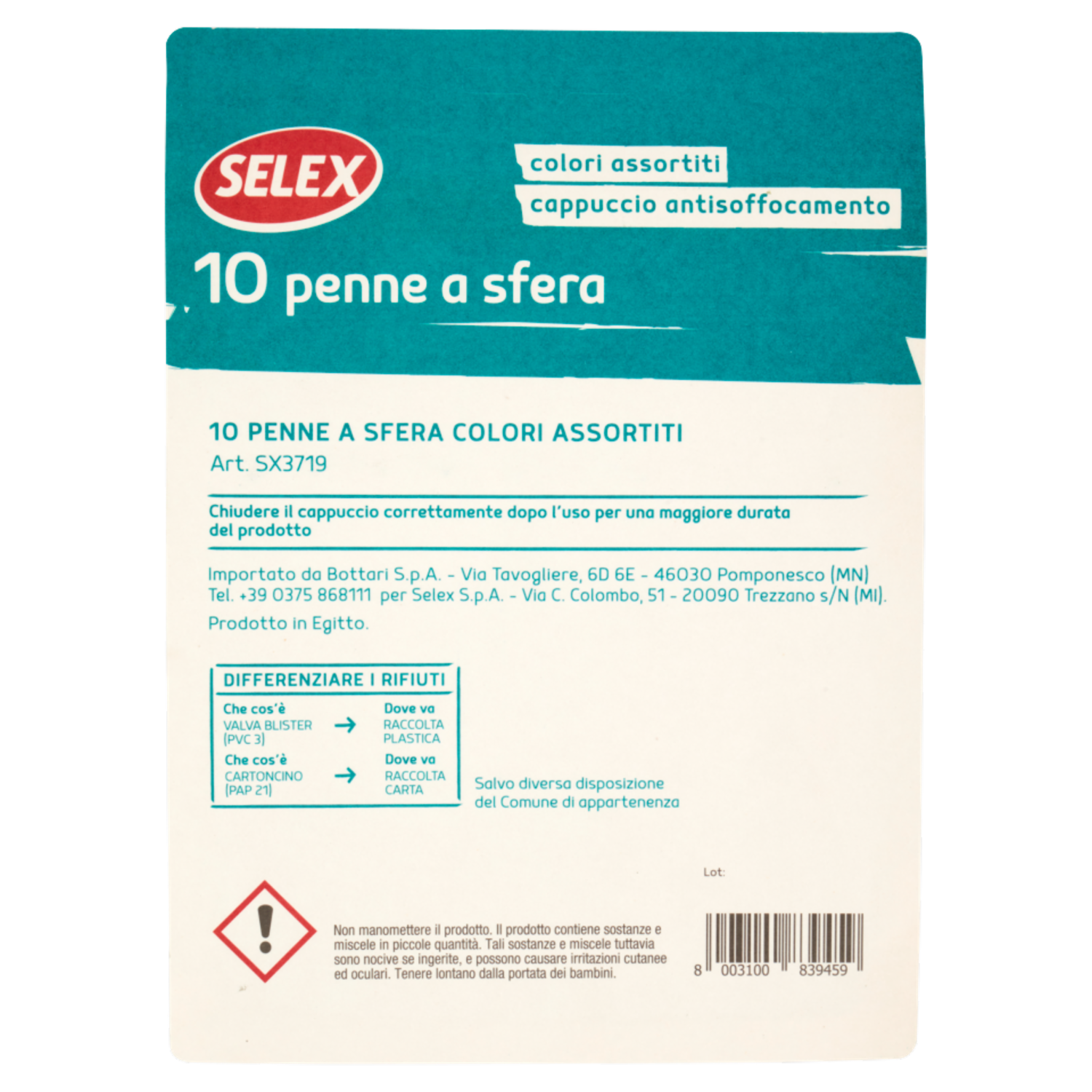 Selex Penna a Sfera Colori Assortiti 10 pezzi