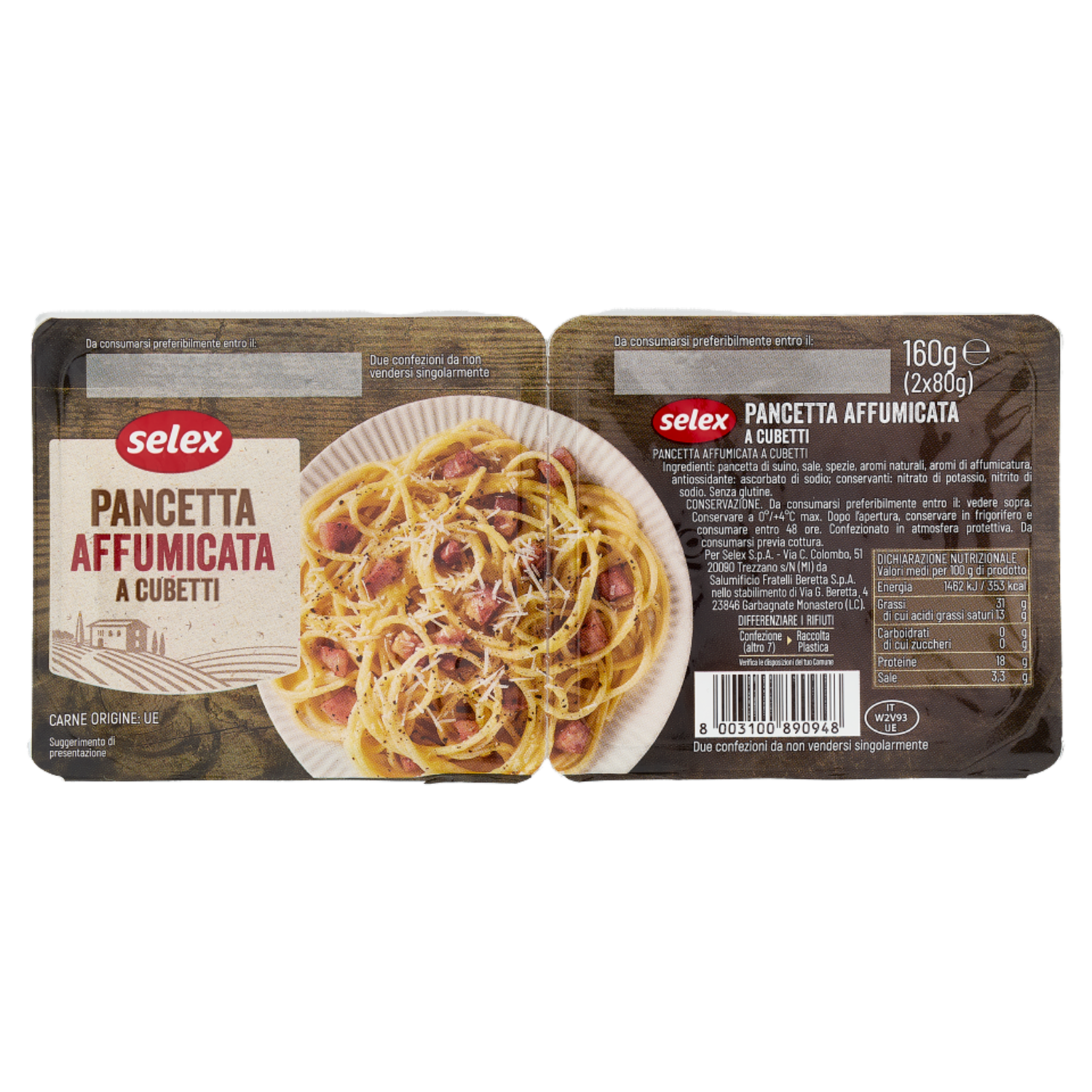 Selex Pancetta Affumicata a Cubetti in Confezioni Salvafreschezza 2x80 g