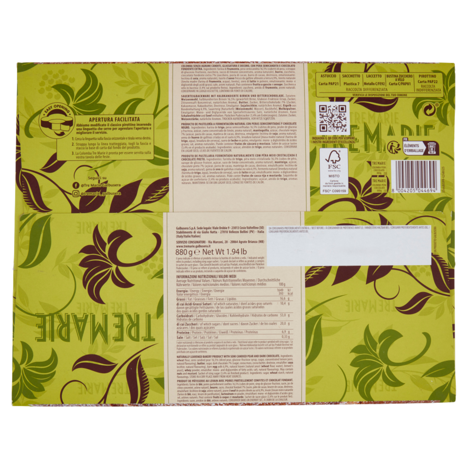 Tre Marie Colomba Pera e Cioccolato 880 g