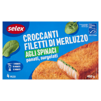 Selex Filetti di Merluzzo agli Spinaci in Croccante Panatura Surgelati 4x100 g