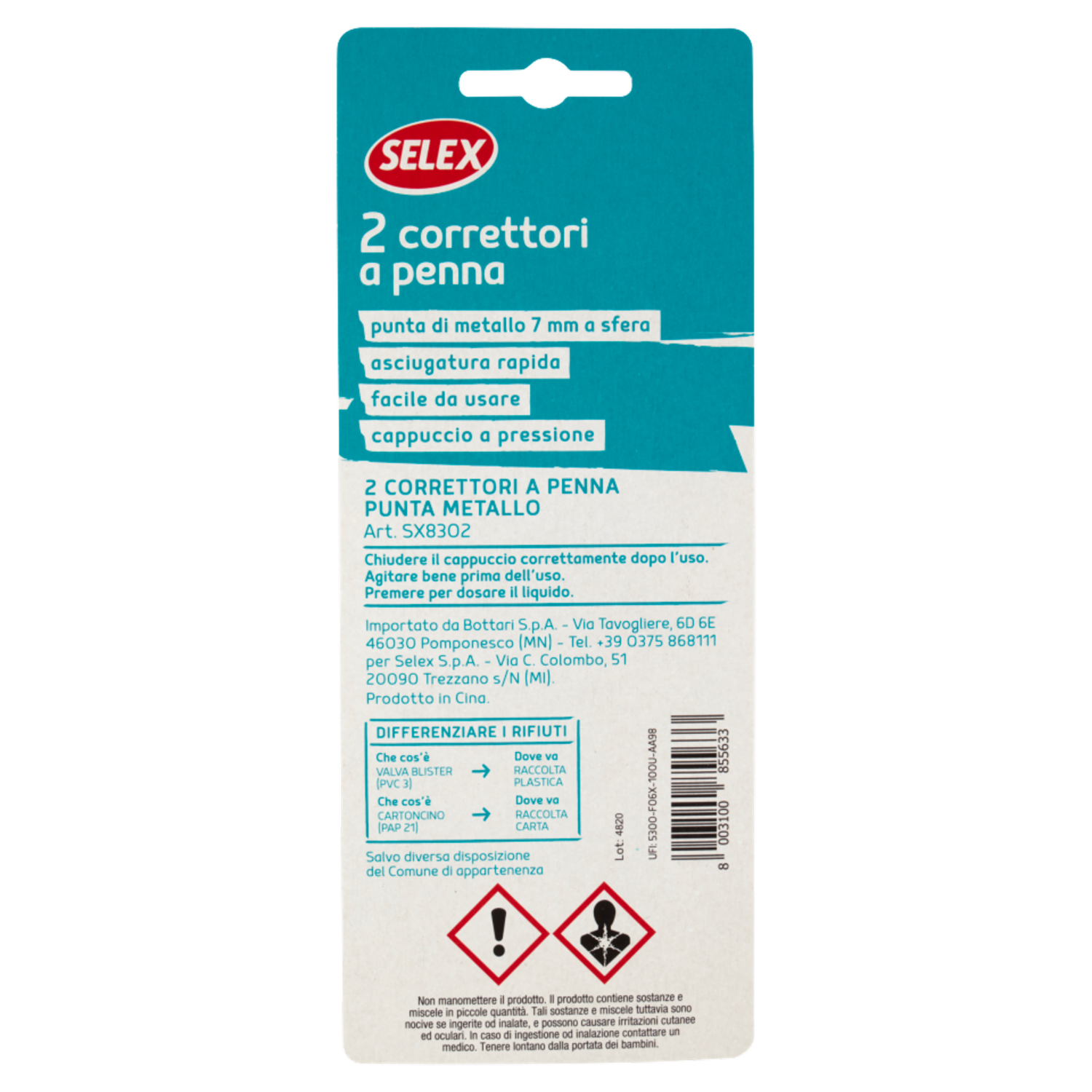 Selex Correttore a Penna con Punta in Metallo 2 pezzi