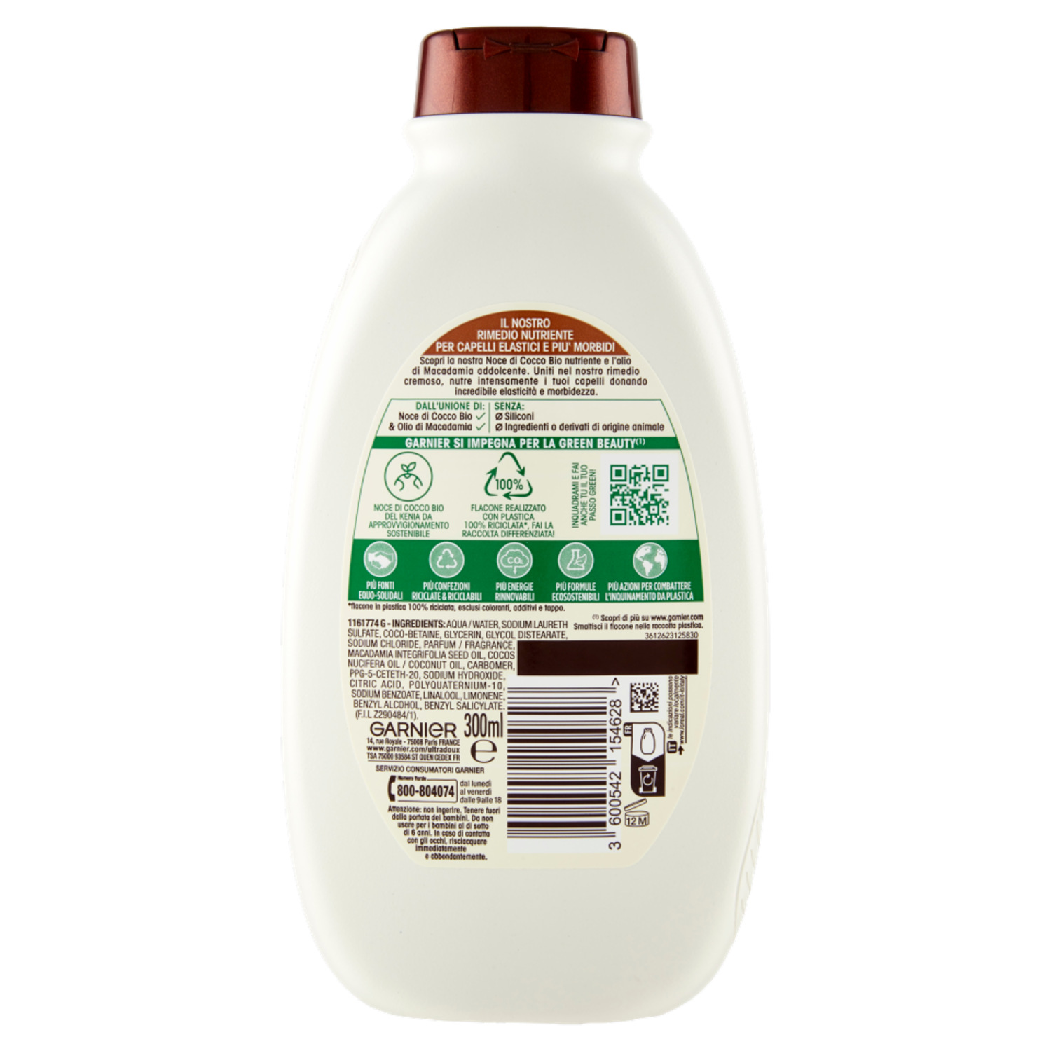 Garnier Shampoo Ultra Dolce Latte di Cocco e Macadamia, Capelli Morbidi e Setosi, 300 ml