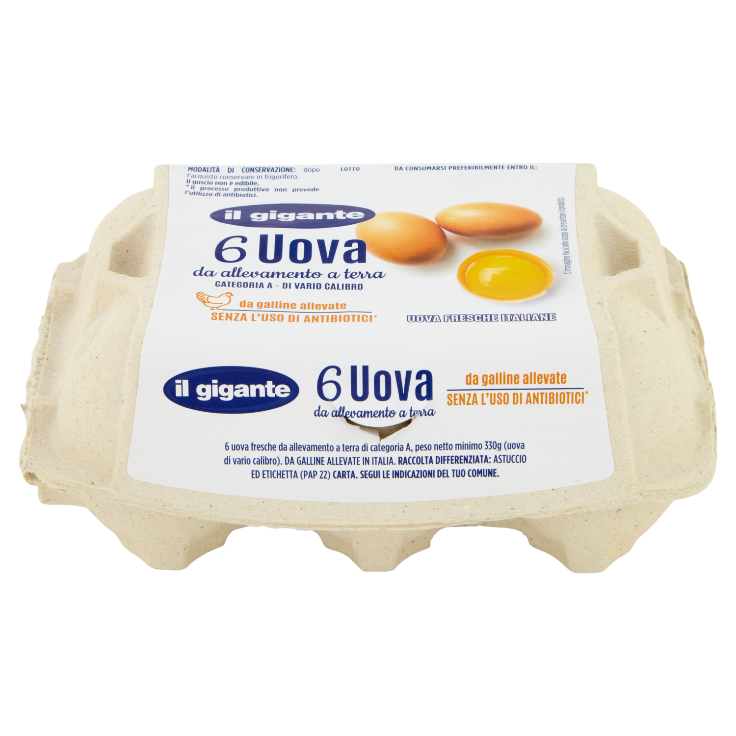 IL GIGANTE 6 Uova da allevamento a terra da galline allevate Senza l'Uso di Antibiotici* 330 g