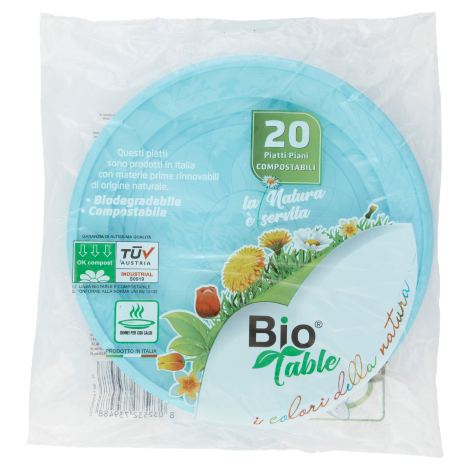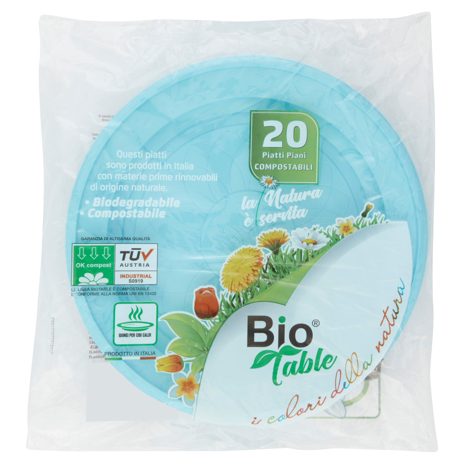 Bio Table i colori della natura Piatti Piani Compostabili Azzurro 20 pz