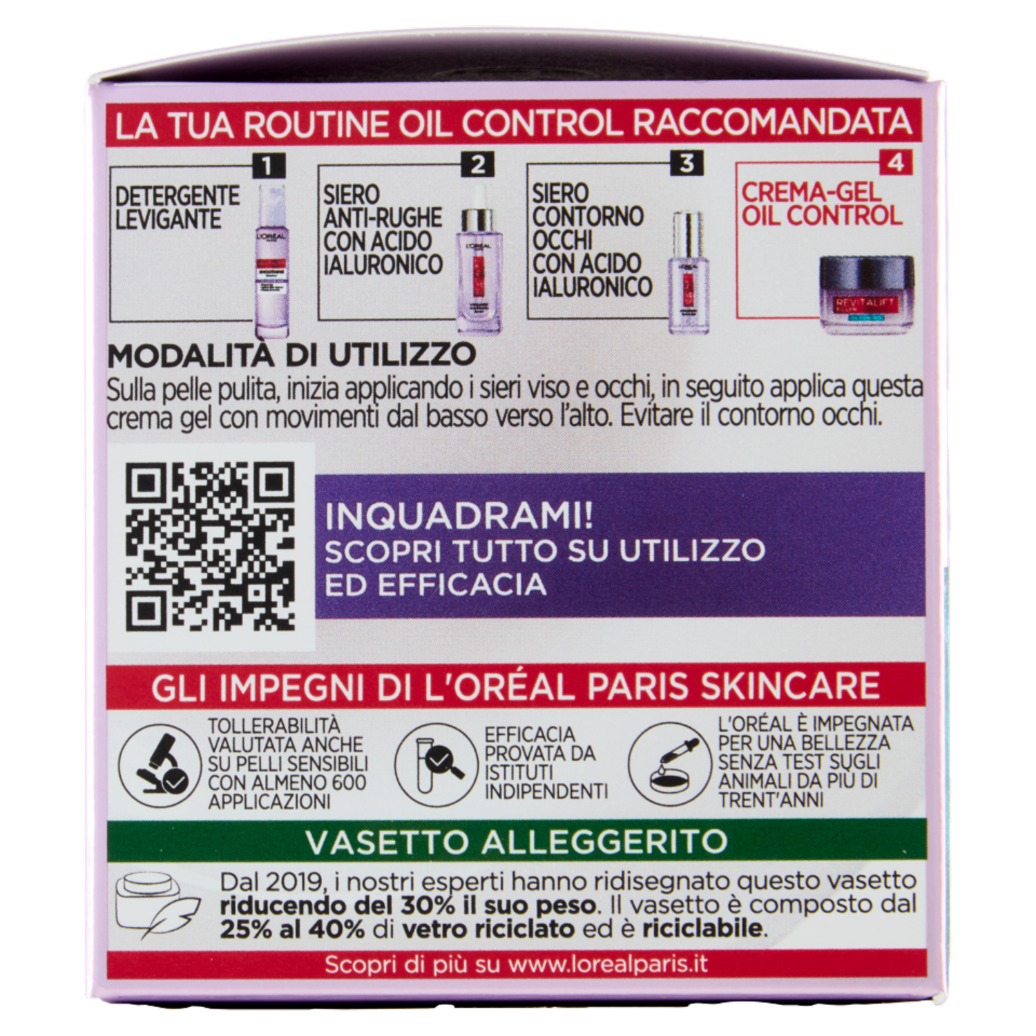 L'Oréal Paris Revitalift Filler Crema-Gel Acido Ialuronico 8H Oil Control 50 ml