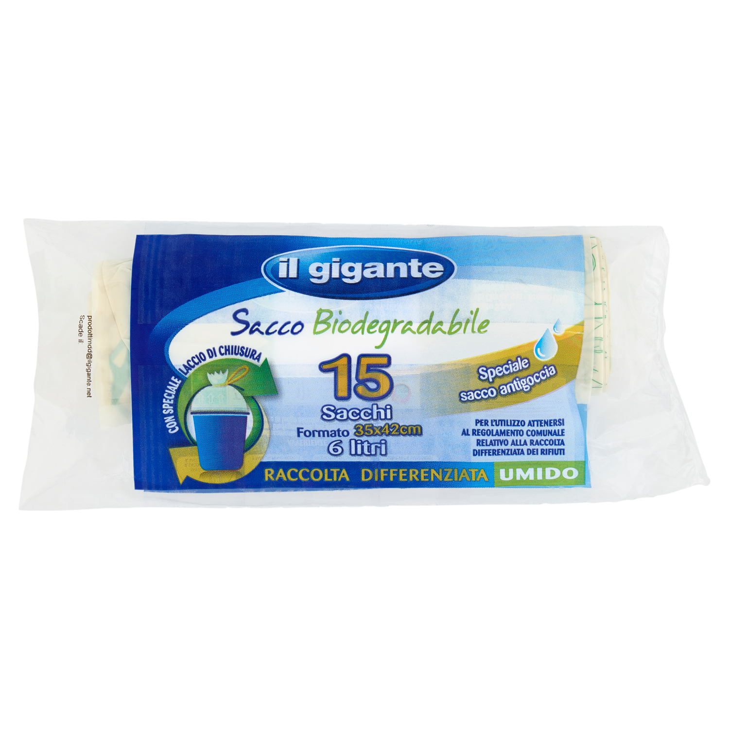 IL GIGANTE Sacco Biodegradabile Formato 35x42cm 6 litri Raccolta Differenziata Umido 15 pz