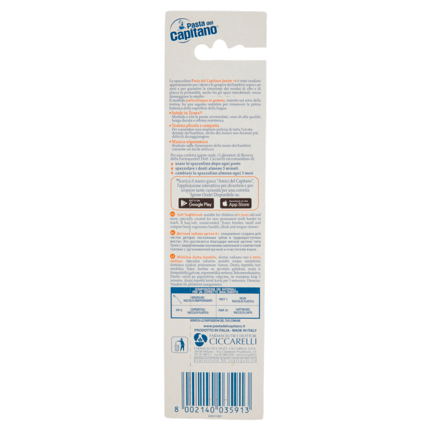 Pasta del Capitano Spazzolino Junior Captain +6 Anni