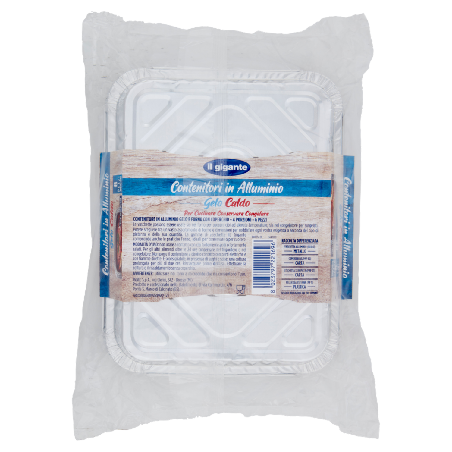IL GIGANTE Contenitori in Alluminio Gelo Caldo con Coperchio 4 Porzioni 6 pz