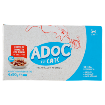 ADoC For Cats Naturally Premium Filetti di Tonnetto con Manzo in Gelatina 6 x 50 g