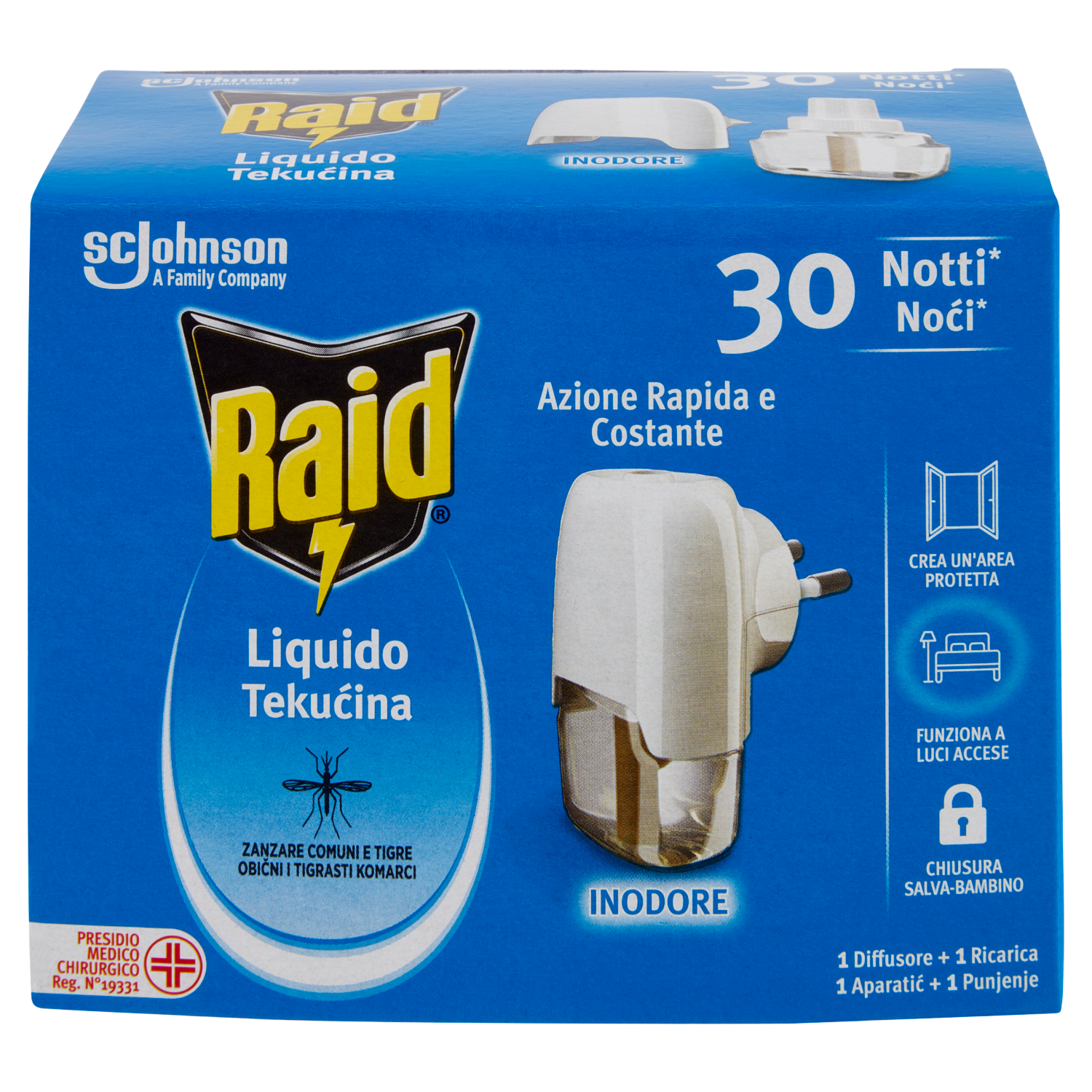 Raid Liquido Elettrico Antizanzare Contro Zanzare, 1 Base e 1 Ricarica 21 ml, 30 Notti