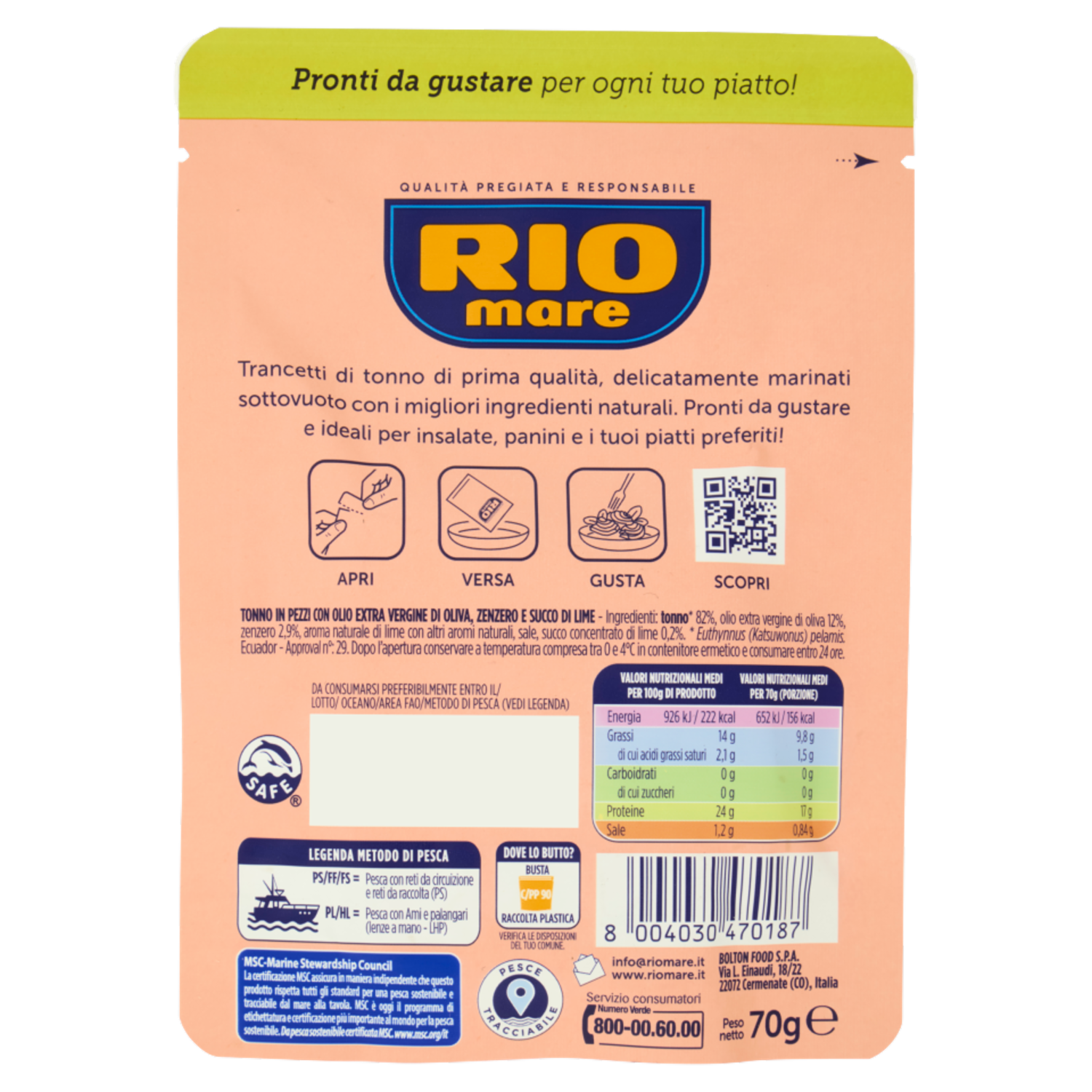 Rio mare Trancetti di Tonno con un filo di Olio Extra Vergine di Oliva e succo di Lime e Zenzero 70g