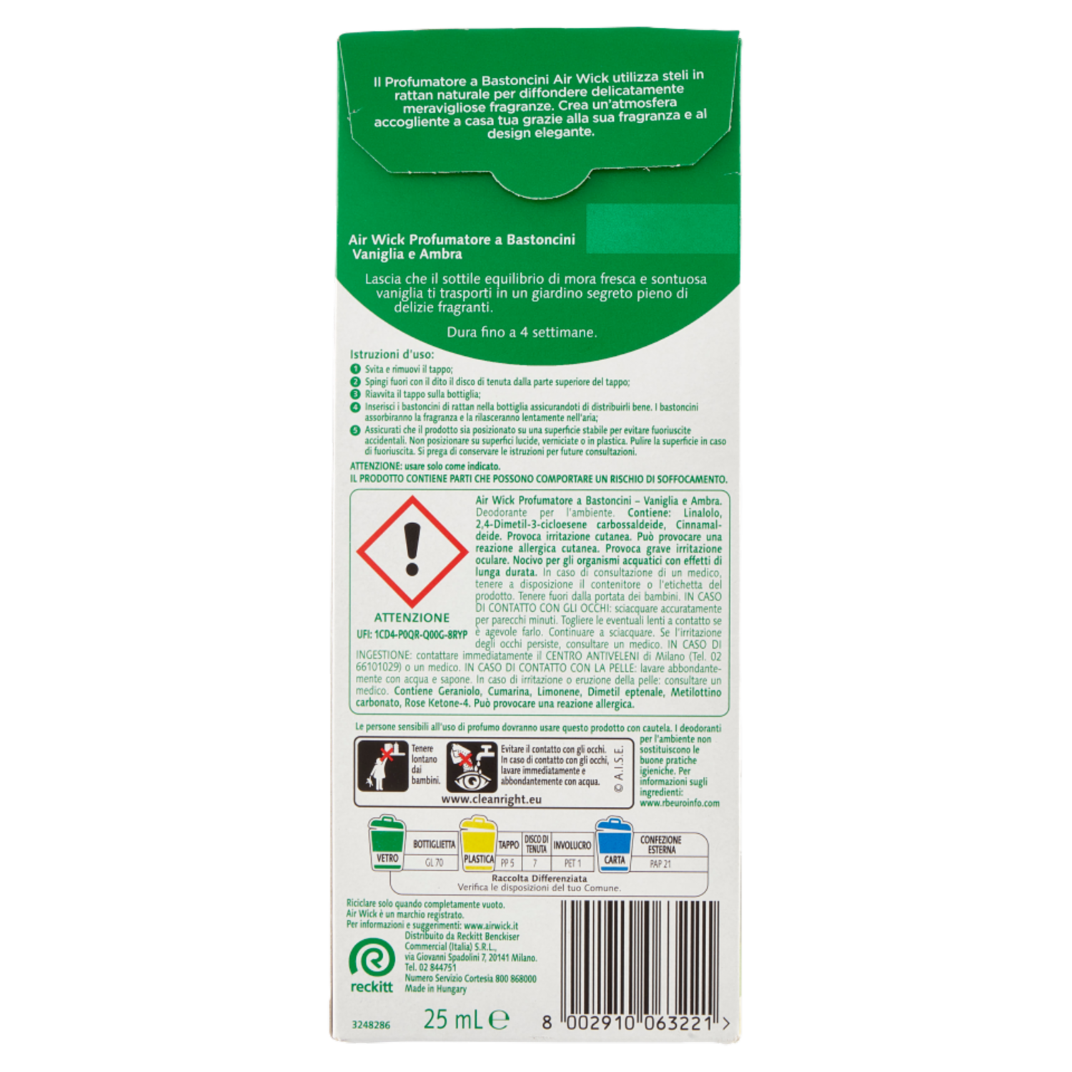 Air Wick Essential Oils Vaniglia e Ambra Profumatore a Bastoncini 25 ml