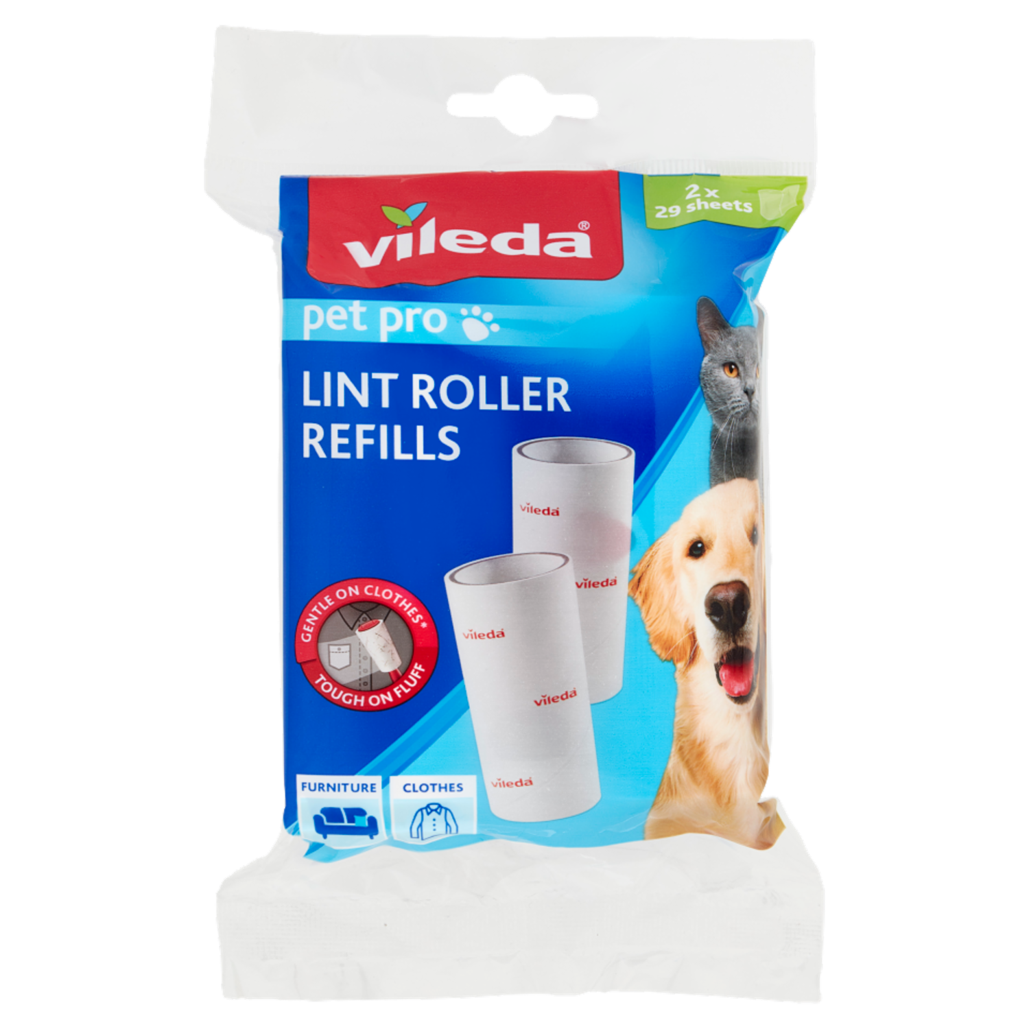 Vileda Pet Pro Lint Roller - Spazzola Adesiva Ricambio 2pz