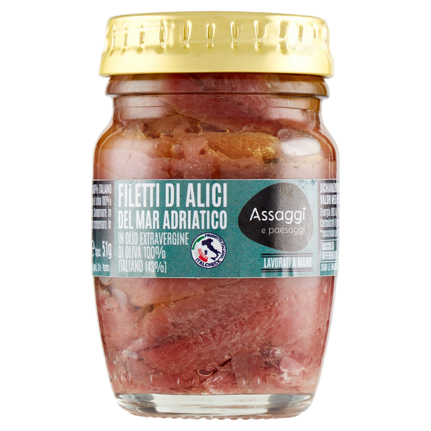 Assaggi e paesaggi Filetti Alici Mar Adriatico in Olio Extravergine Oliva 100% Italiano (43%) 90 g