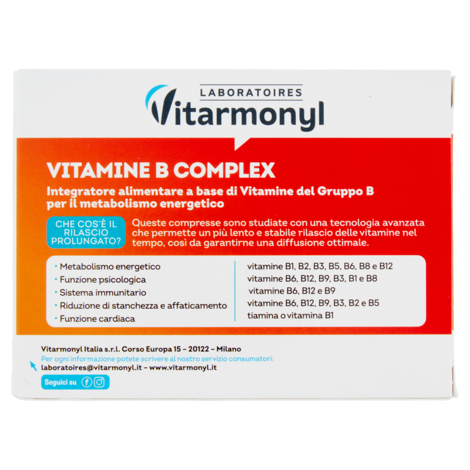 Laboratoires Vitarmonyl Vitamine B Complex Energia fisica e mentale 30 Compresse 21 g