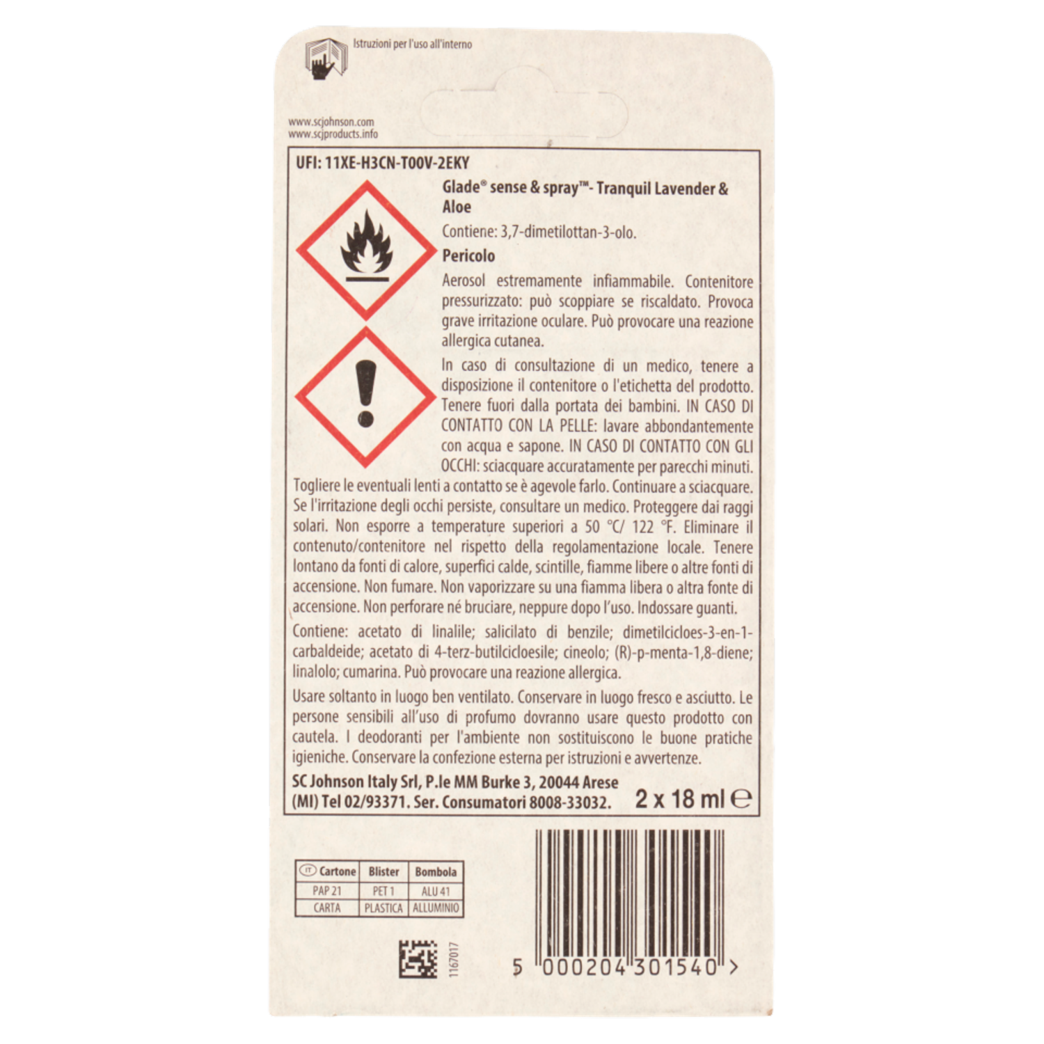 Glade Sense&Spray Doppia Ricarica, Profumatore Ambienti con Sensore, Tranquil Lavender & Aloe 2x18ml