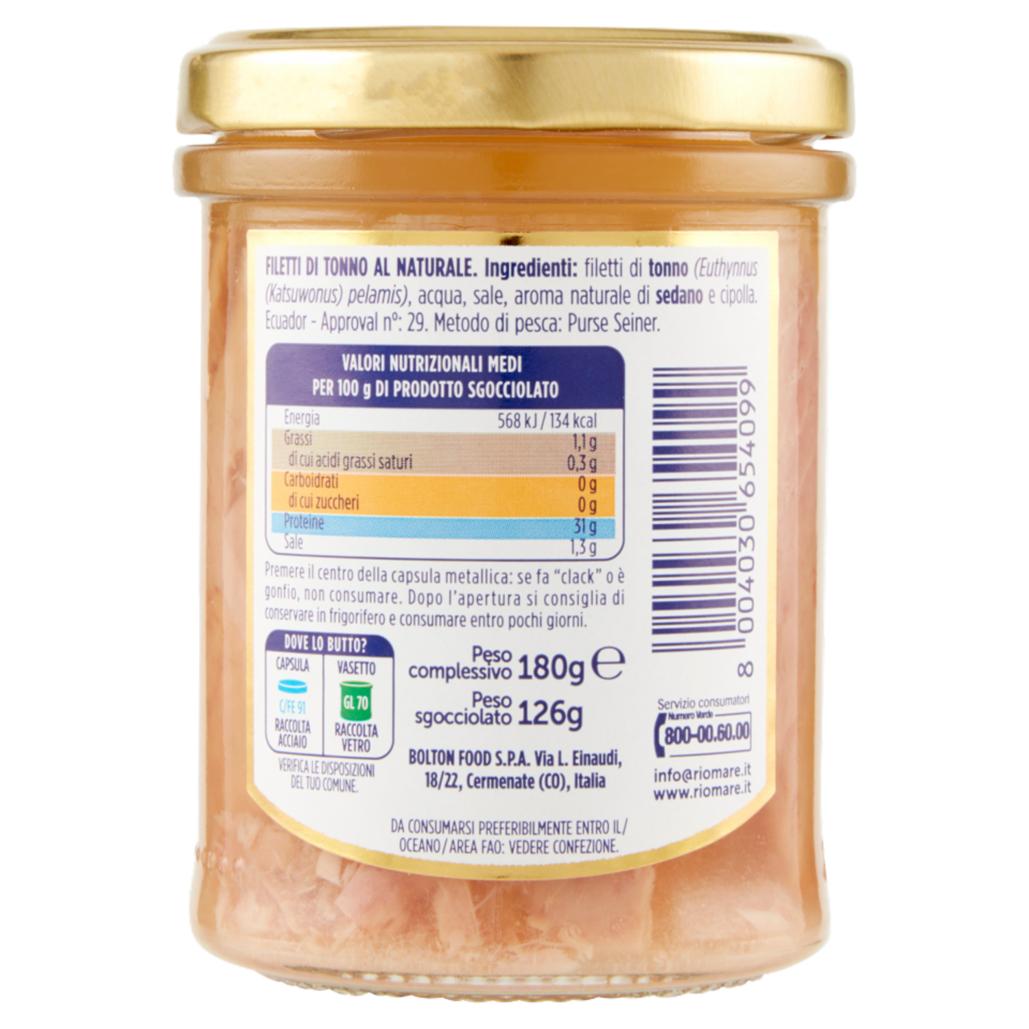 Rio mare Filetti di Tonno al Naturale 180 g