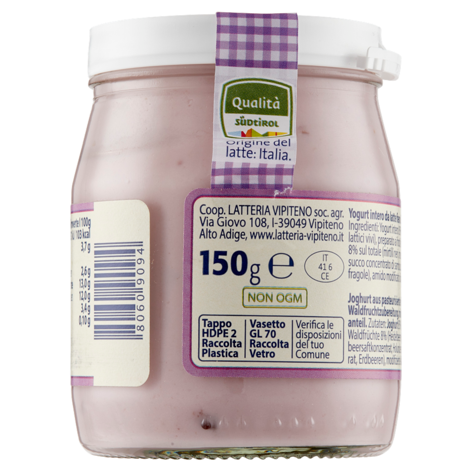 Sterzing Vipiteno Alpenjoghurt Frutti di bosco da Latte Fieno 150 g