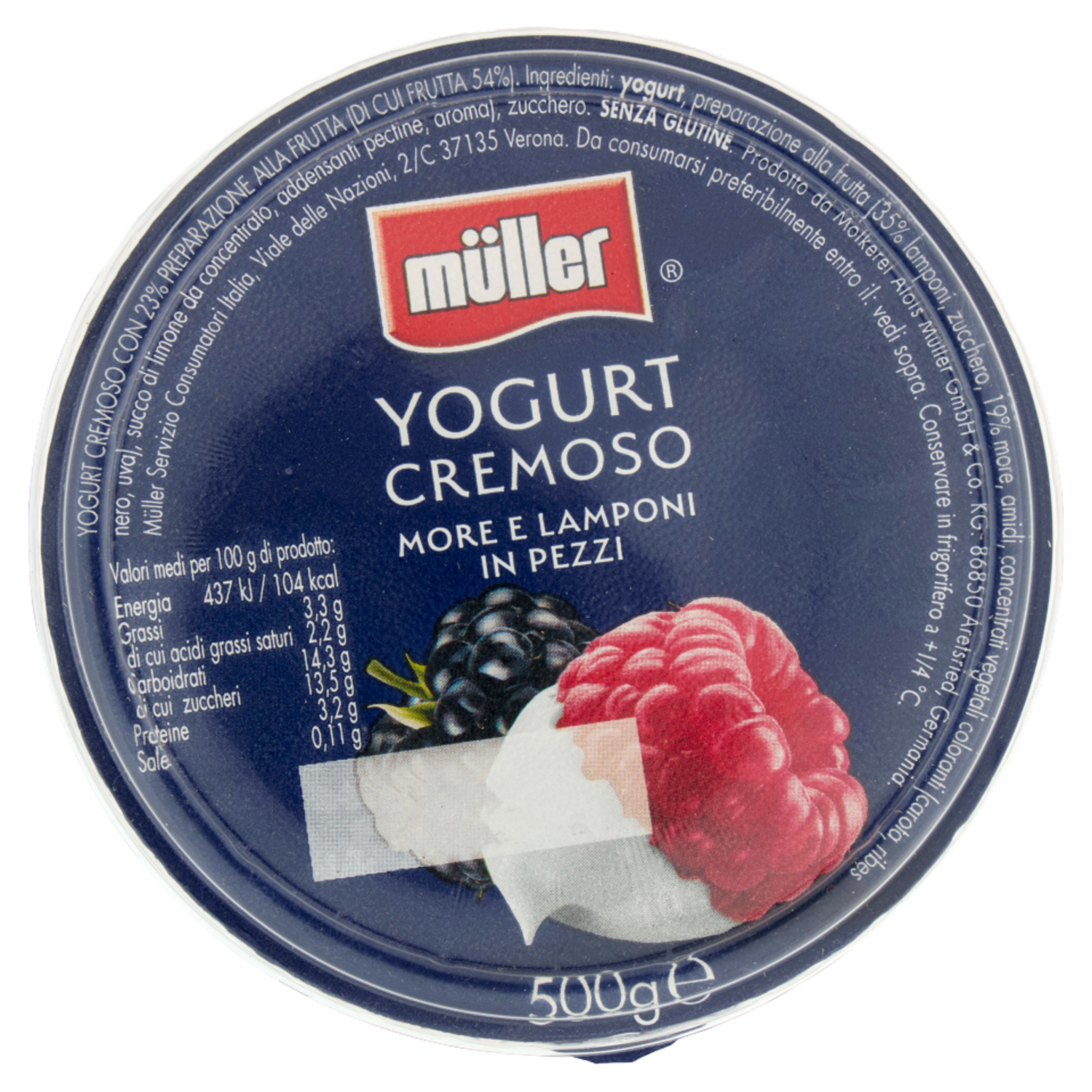 müller Yogurt Cremoso More e Lamponi in Pezzi 500 g