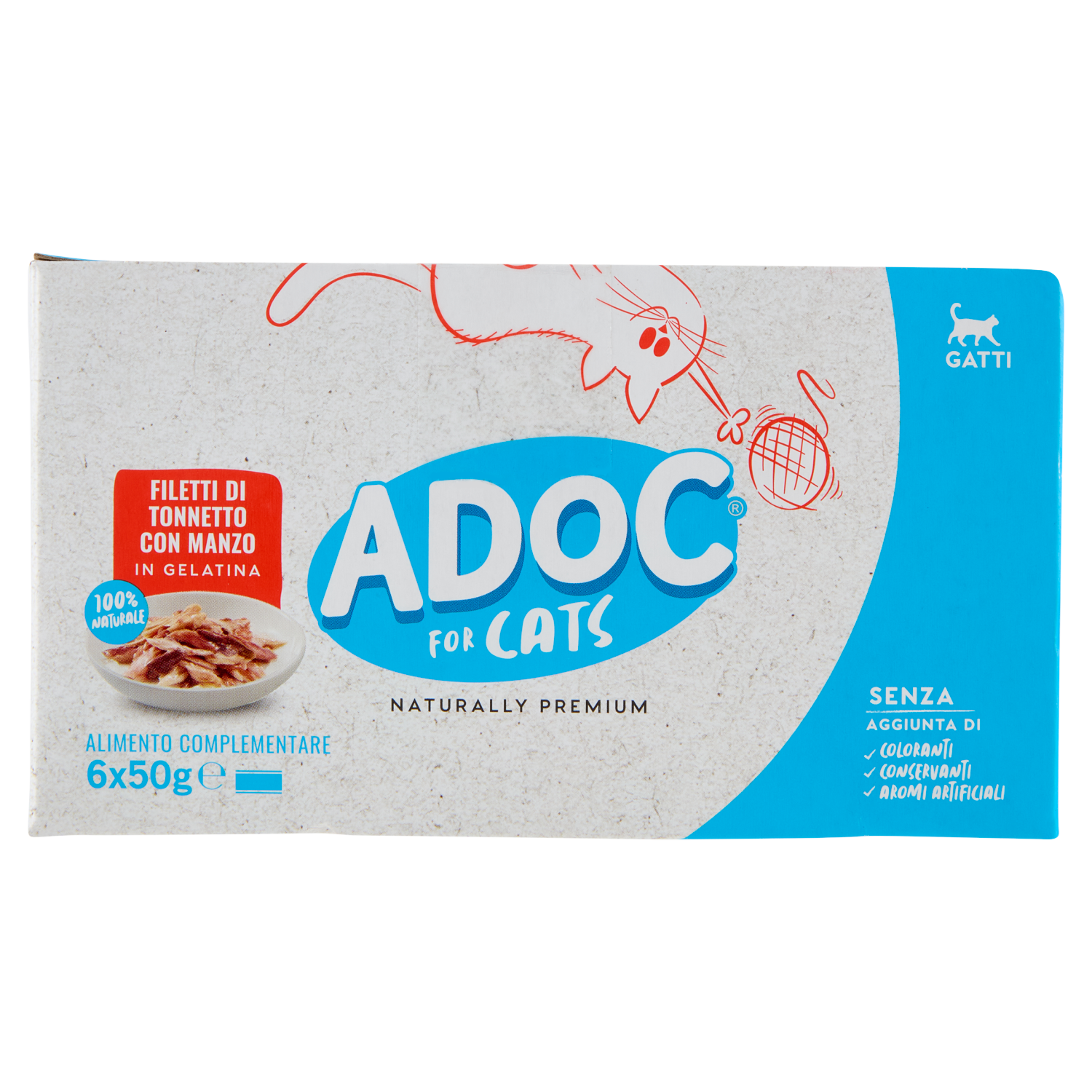 ADoC For Cats Naturally Premium Filetti di Tonnetto con Manzo in Gelatina 6 x 50 g