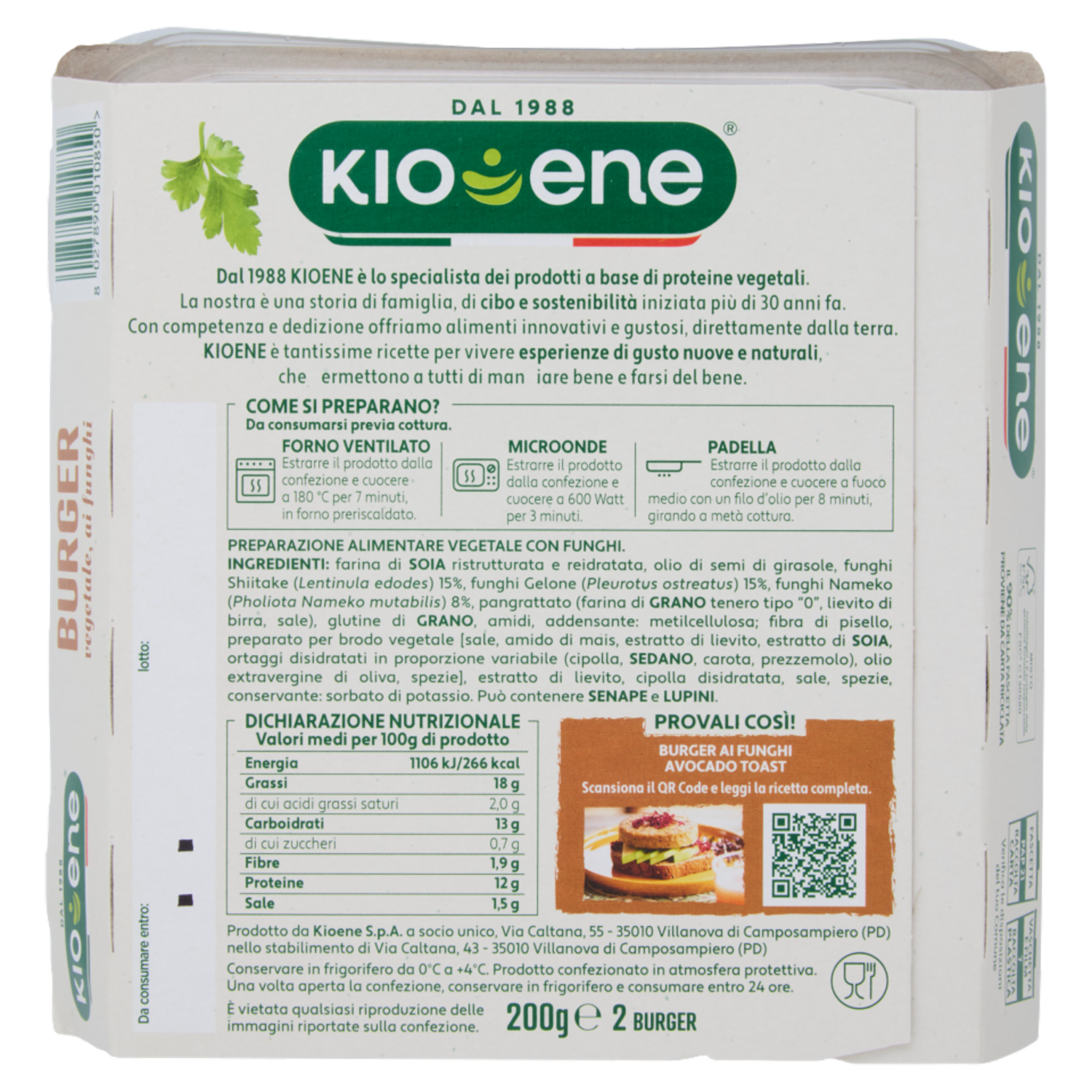 Kioene Burger vegetale, ai funghi 2 Burger 200 g