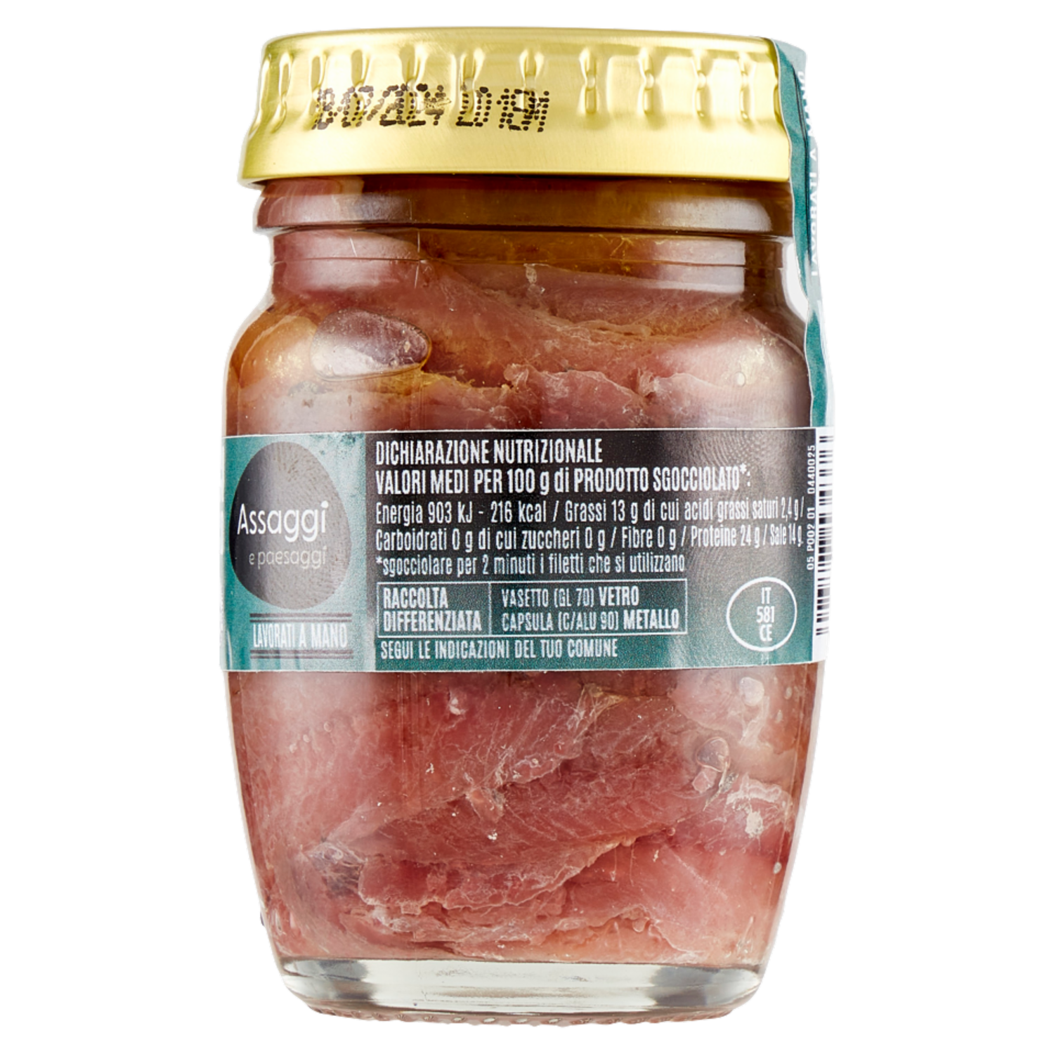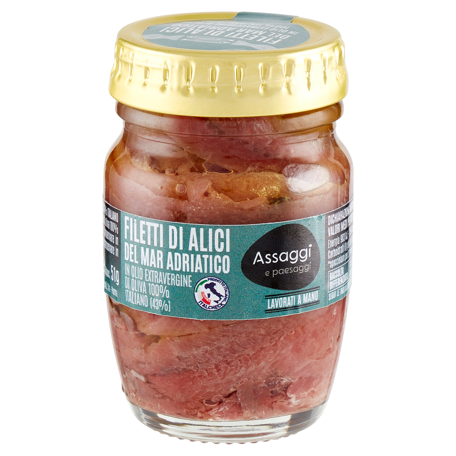 Assaggi e paesaggi Filetti Alici Mar Adriatico in Olio Extravergine Oliva 100% Italiano (43%) 90 g