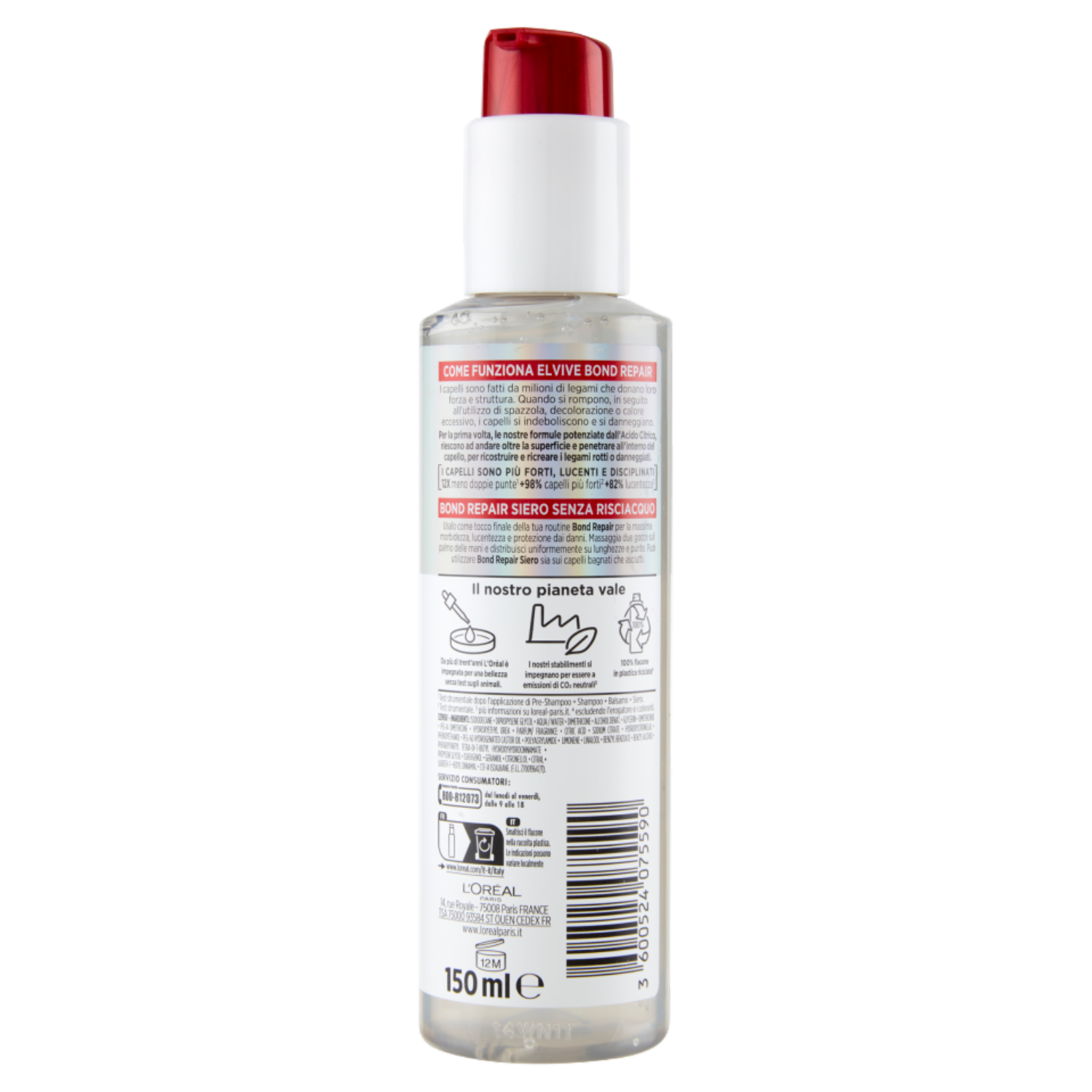 L'Oréal Paris Elvive Bond Repair Siero Senza Risciacquo Per Capelli Danneggiati, 150 ml
