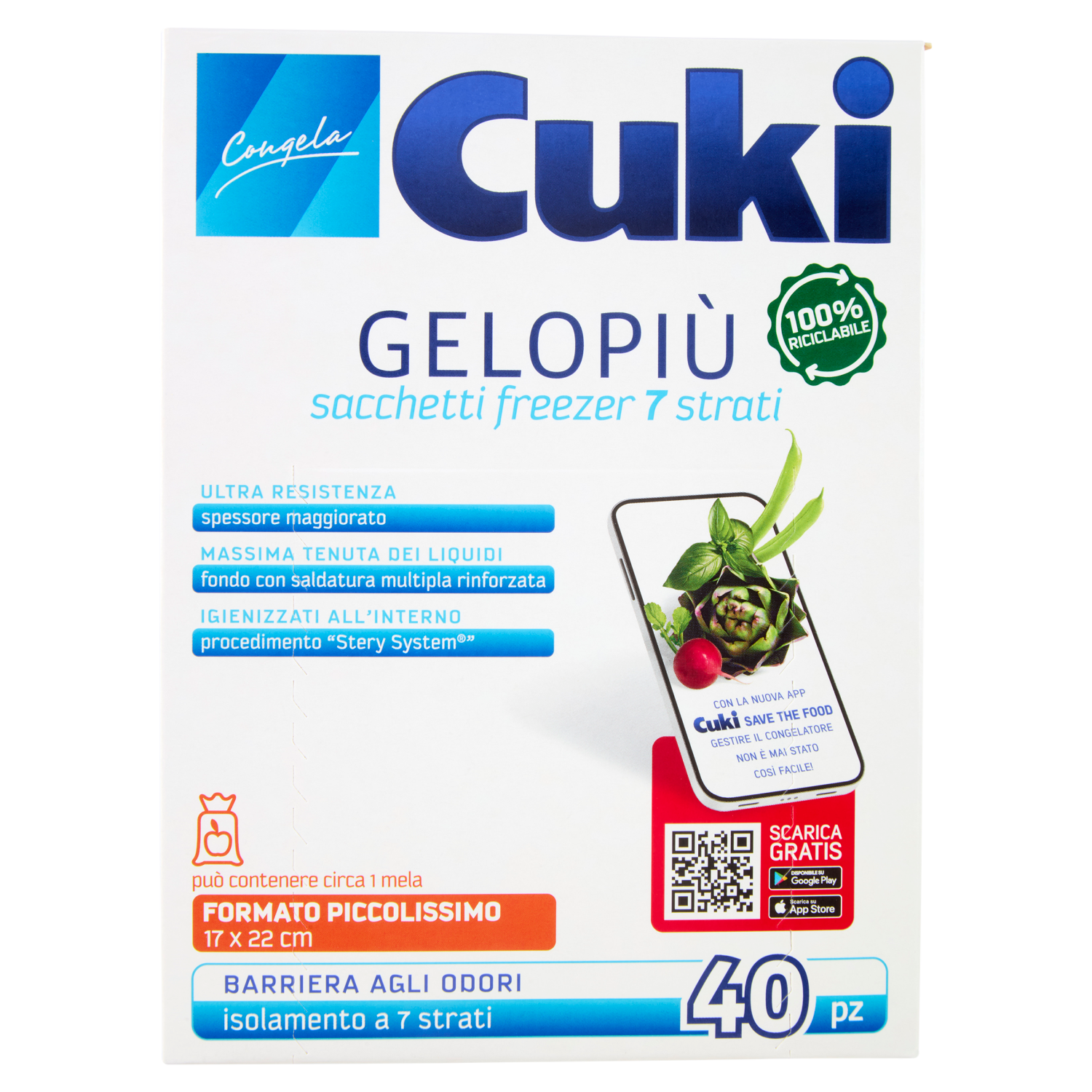 Cuki Congela Gelopiù sacchetti freezer 7 strati Formato Piccolissimo 17 x 22 cm 40 pz
