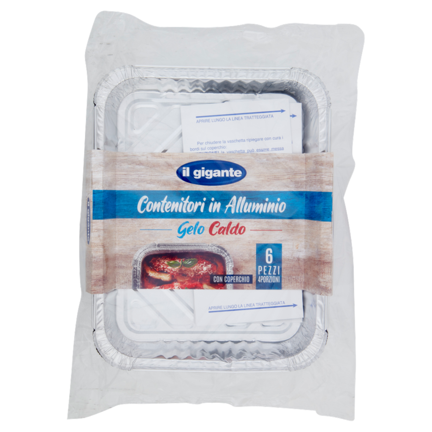 IL GIGANTE Contenitori in Alluminio Gelo Caldo con Coperchio 4 Porzioni 6 pz