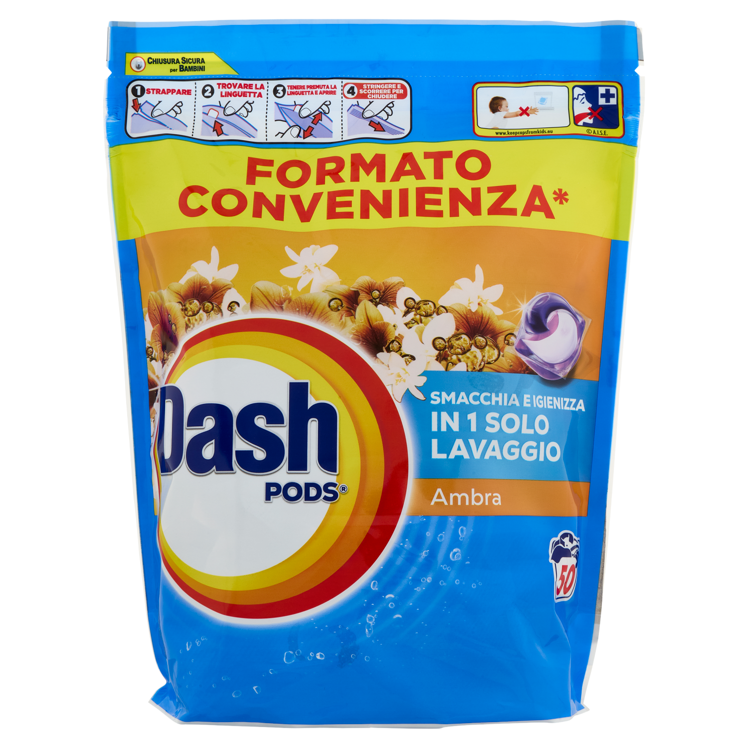 Dash Pods Detersivo Lavatrice In Capsule, Ambra, 50 Lavaggi 955 g