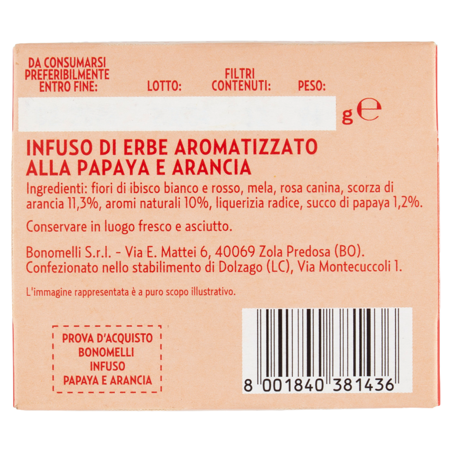 Bonomelli Infusi Fruttosi 100% Naturali Papaya e Arancia 12 Filtri 24 g