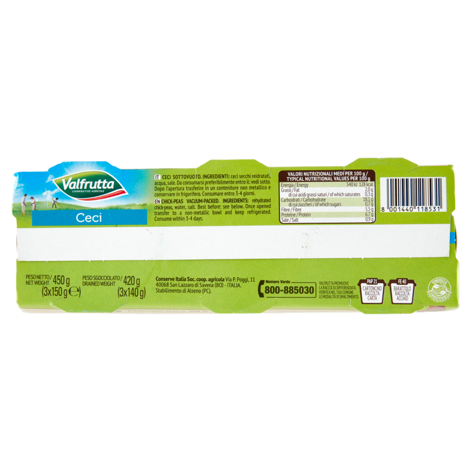 Valfrutta Cotti a Vapore Ceci 3 x 150 g