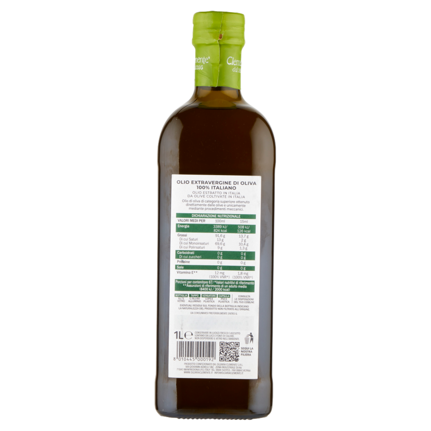 Clemente i Sapori dell'Extra Olio Extra Vergine di Oliva 100% Italiano 1 L