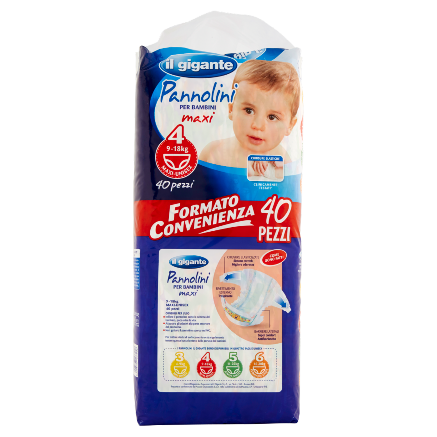 IL GIGANTE Pannolini per Bambini maxi 4 9-18kg Maxi-Unisex 40 pz