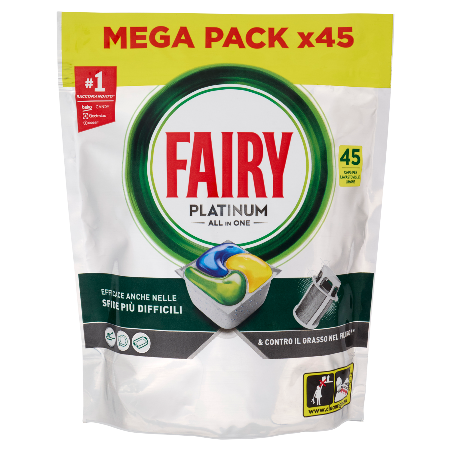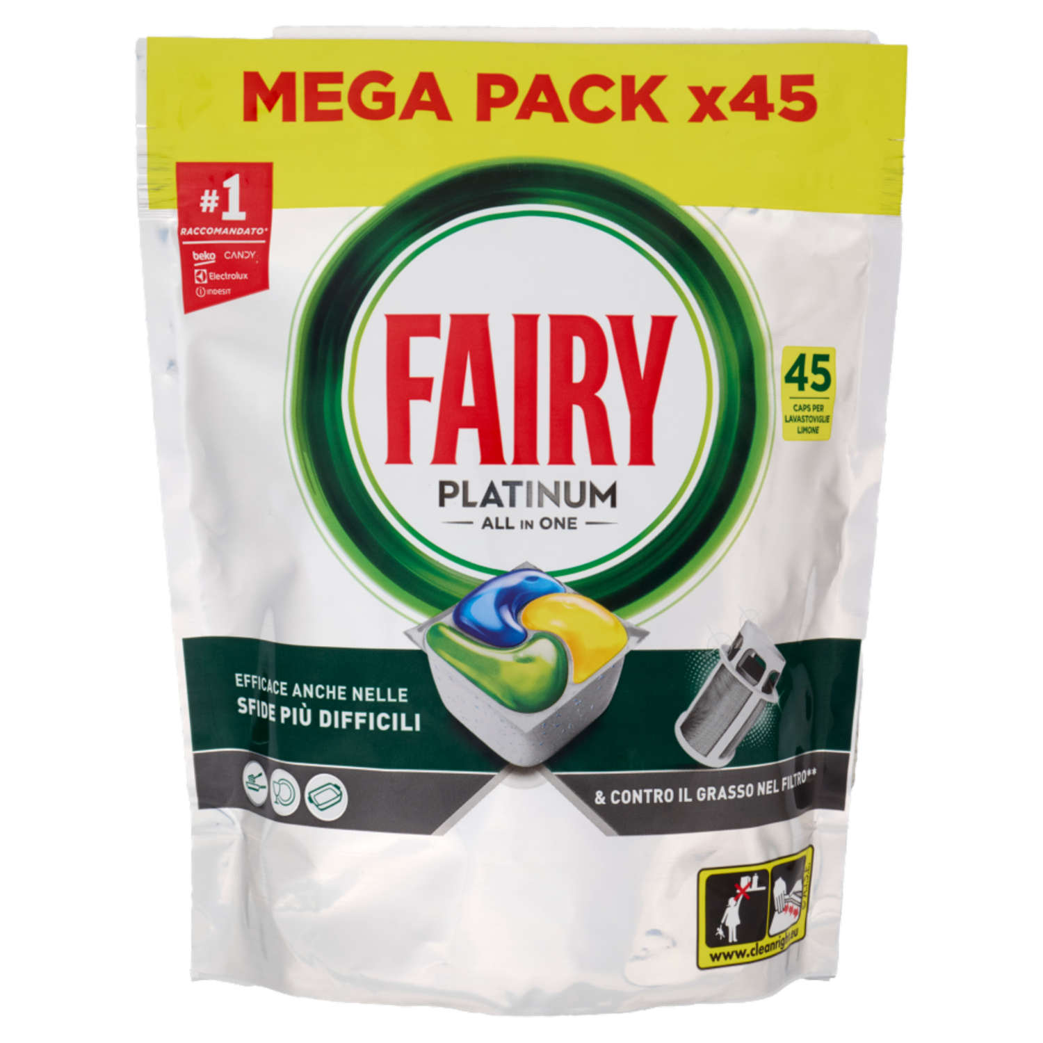 Fairy Pastiglie Lavastoviglie Platinum All in One, Detersivo Piatti Limone, 45 Capsule 671 g