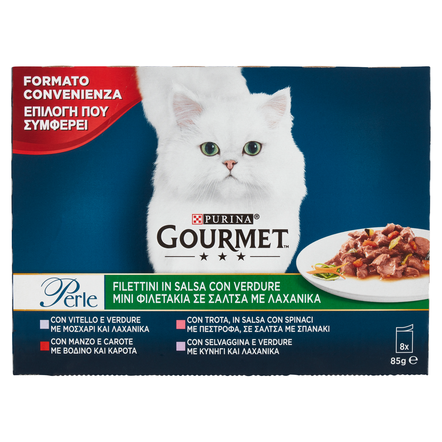 PURINA GOURMET Perle Filettini in Salsa con Verdure Vitello / Manzo / Trota / Selvaggina 8 x 85 g