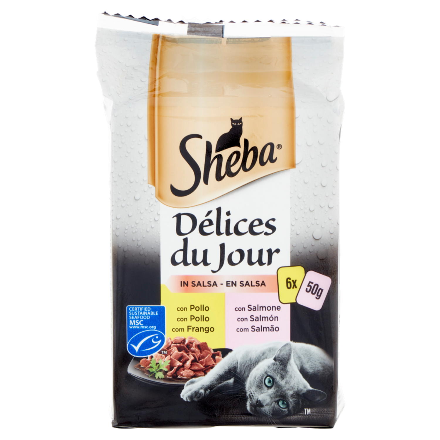 Sheba Délices du Jour in Salsa Cibo Umido Gatto con Pollo e Salmone 6 x 50 g