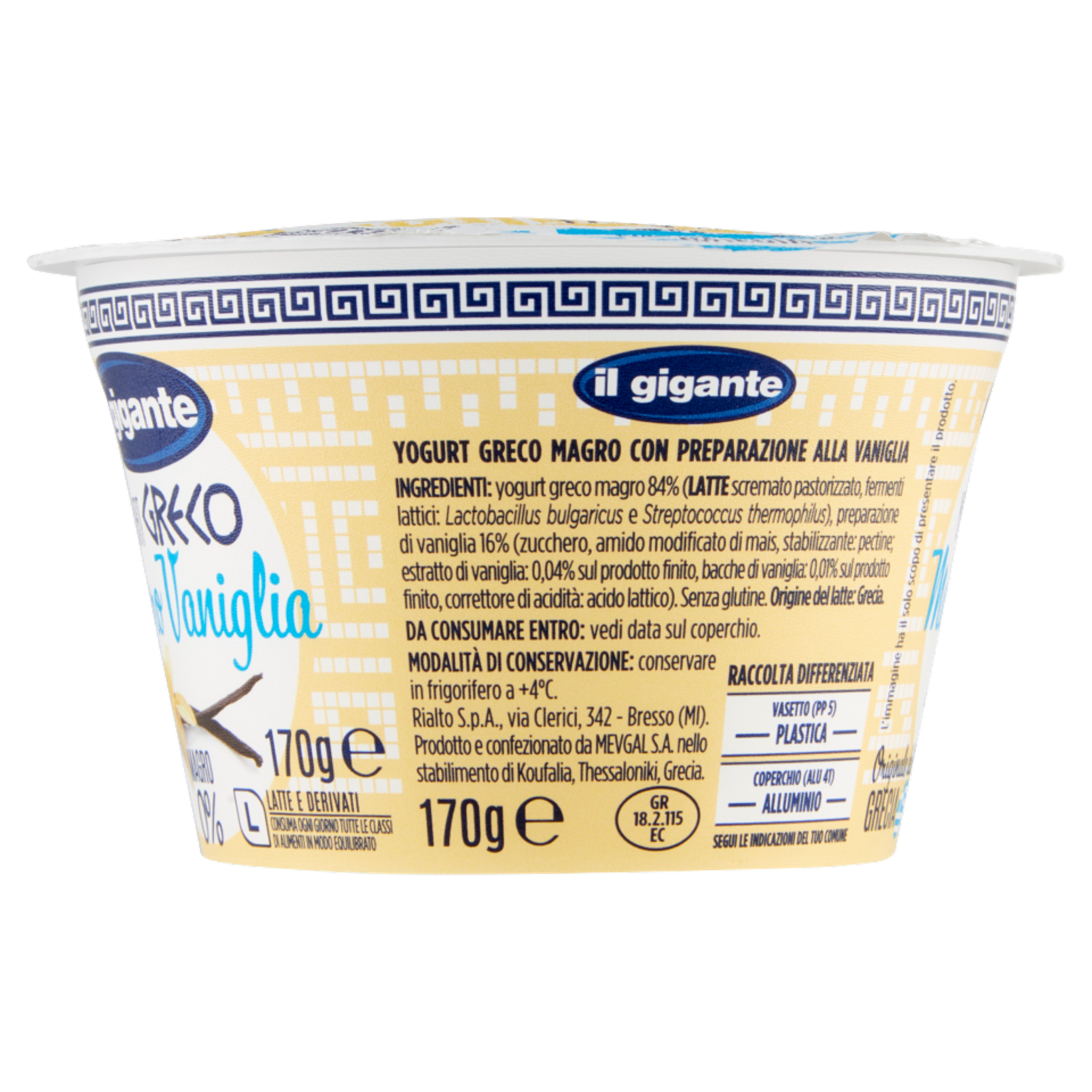 IL GIGANTE Yogurt Greco Magro Vaniglia 170 g