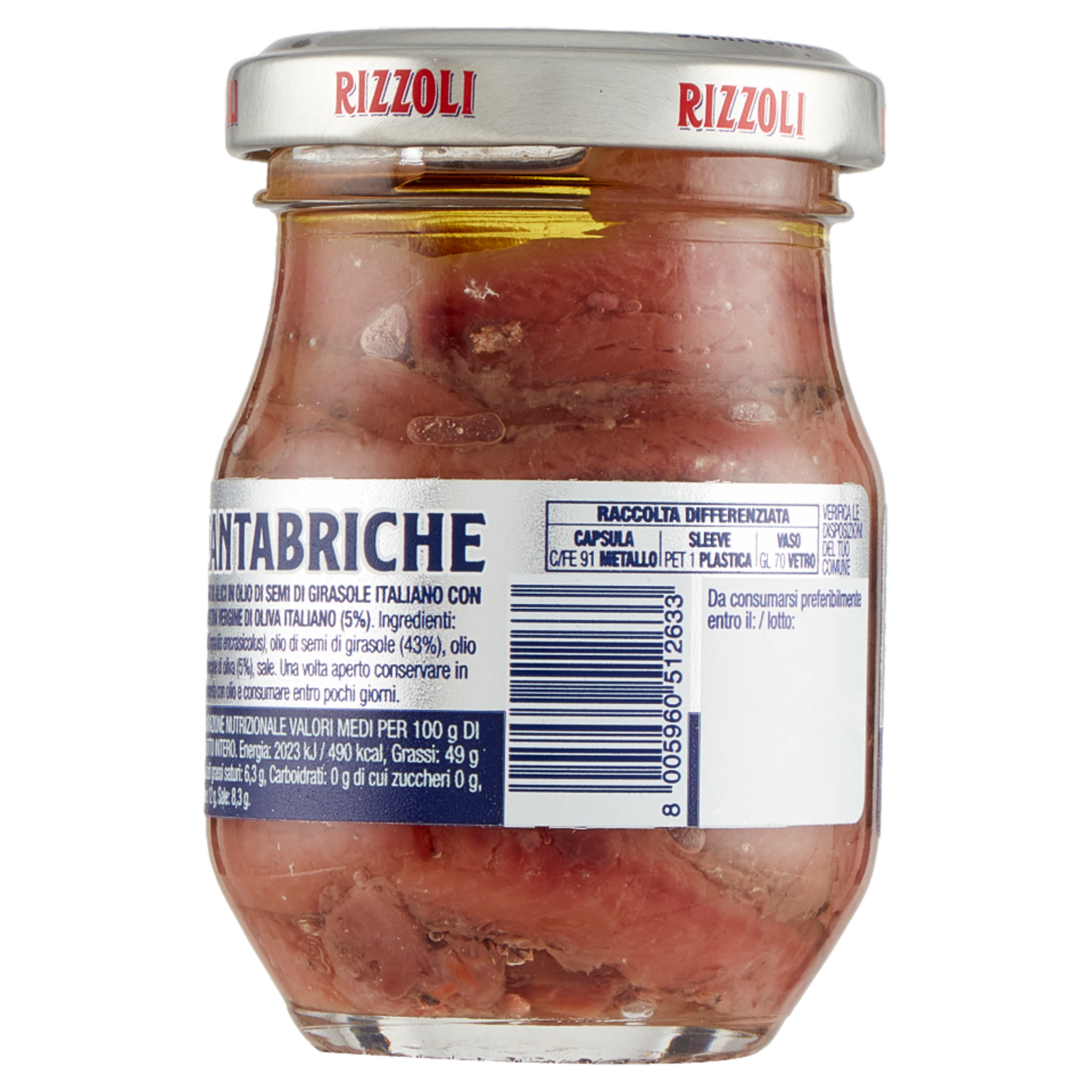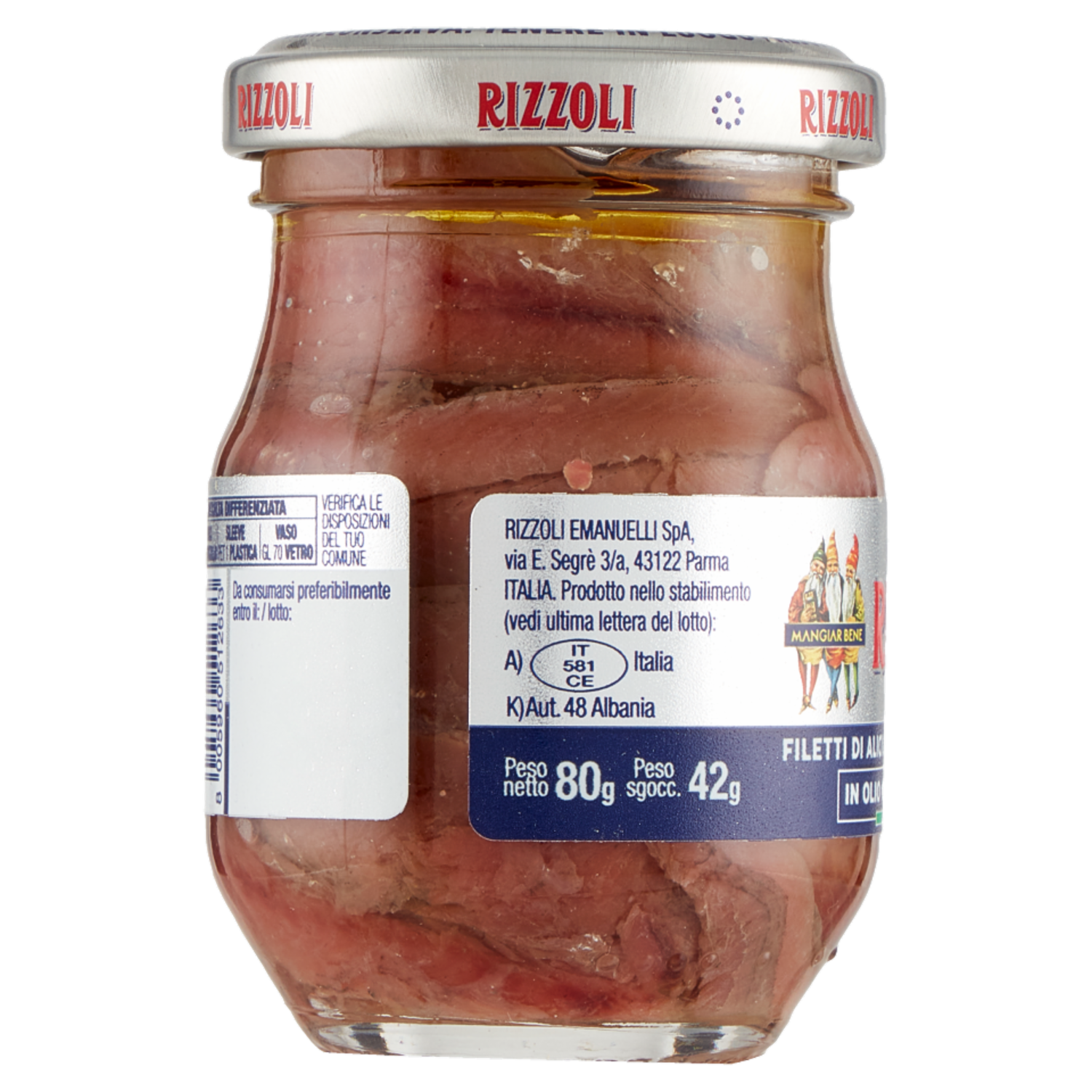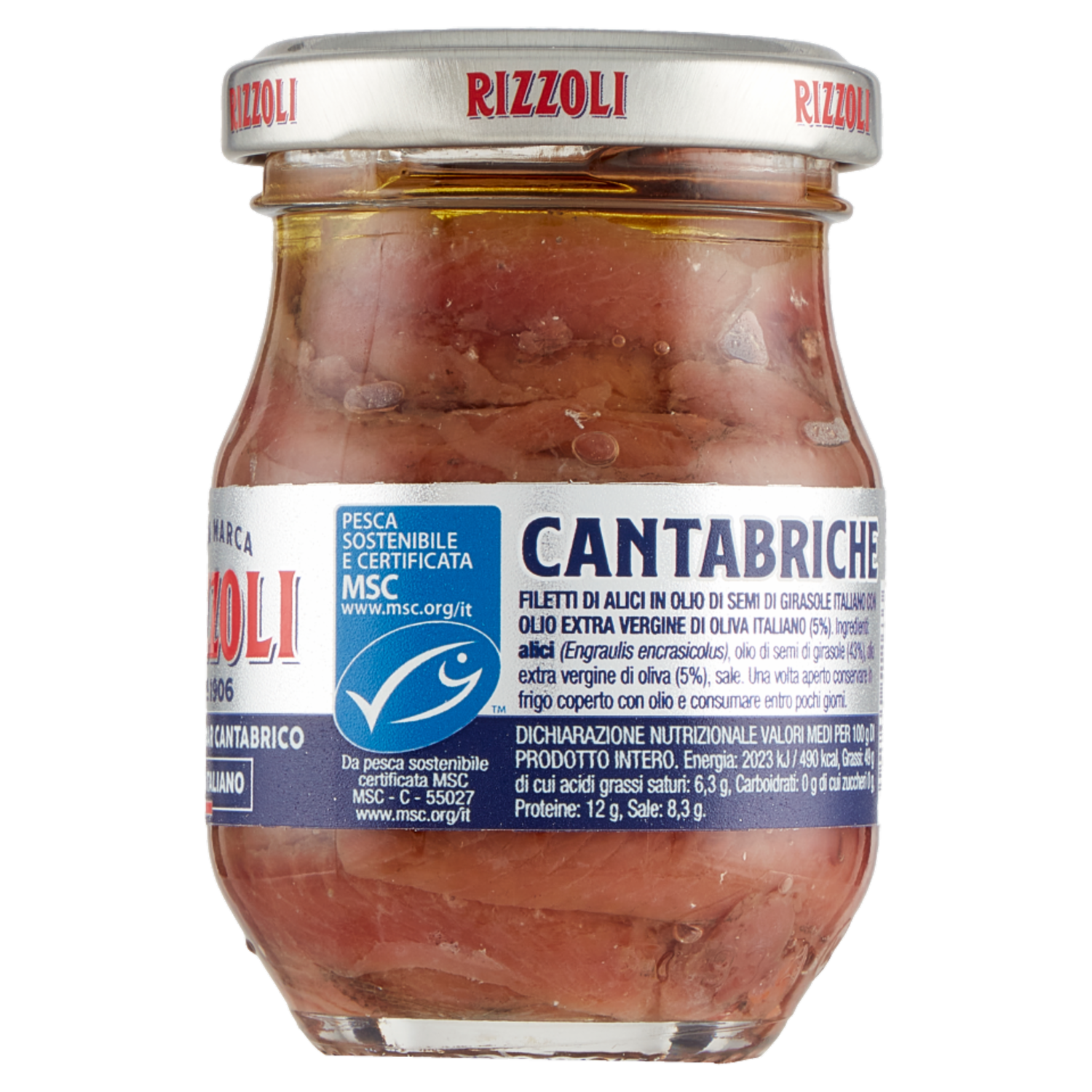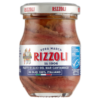 Rizzoli Filetti di Alici del Mar Cantabrico in Olio 100% Italiano 80 g