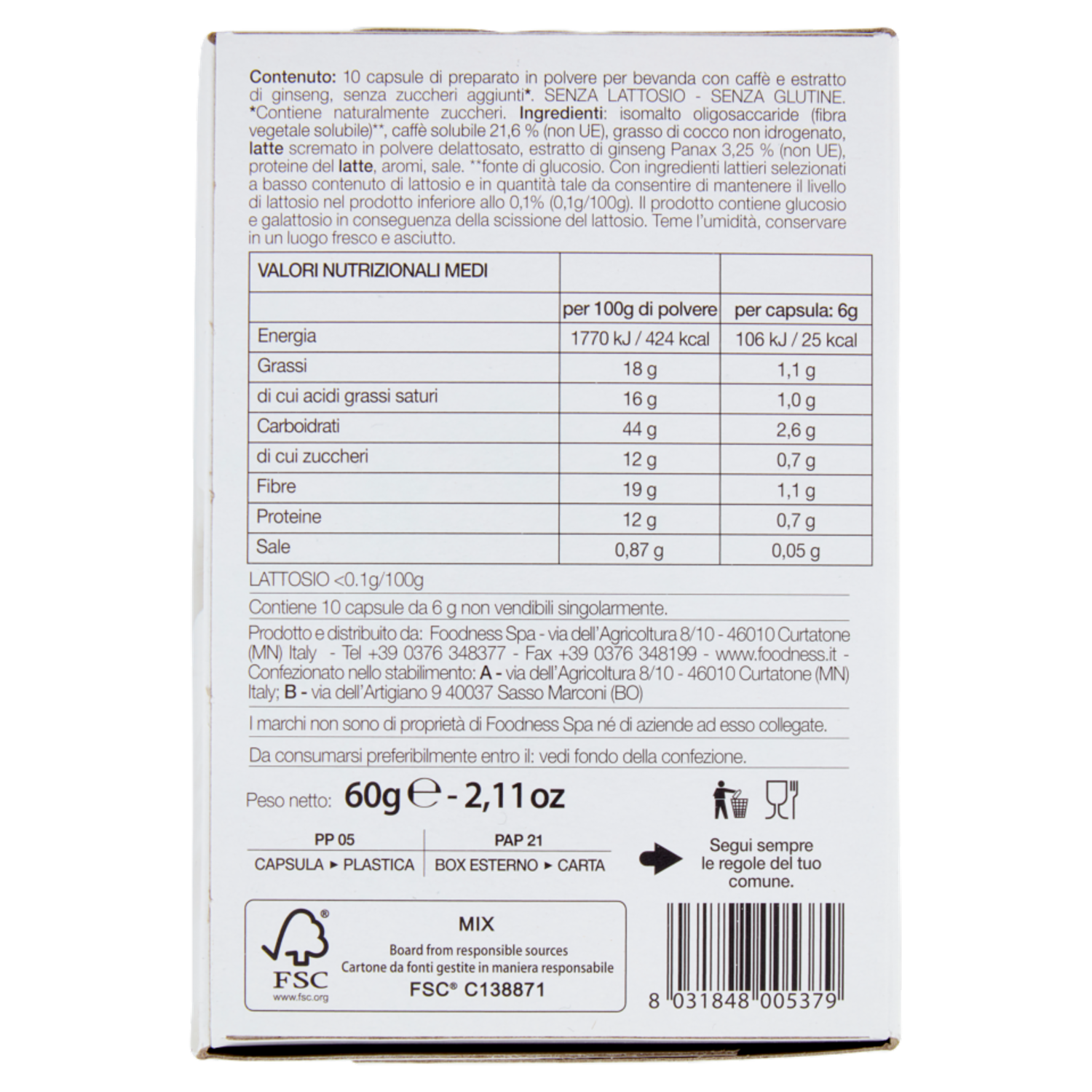 foodNess Ginseng Zero Dolcegusto Compatibile 10 x 6 g