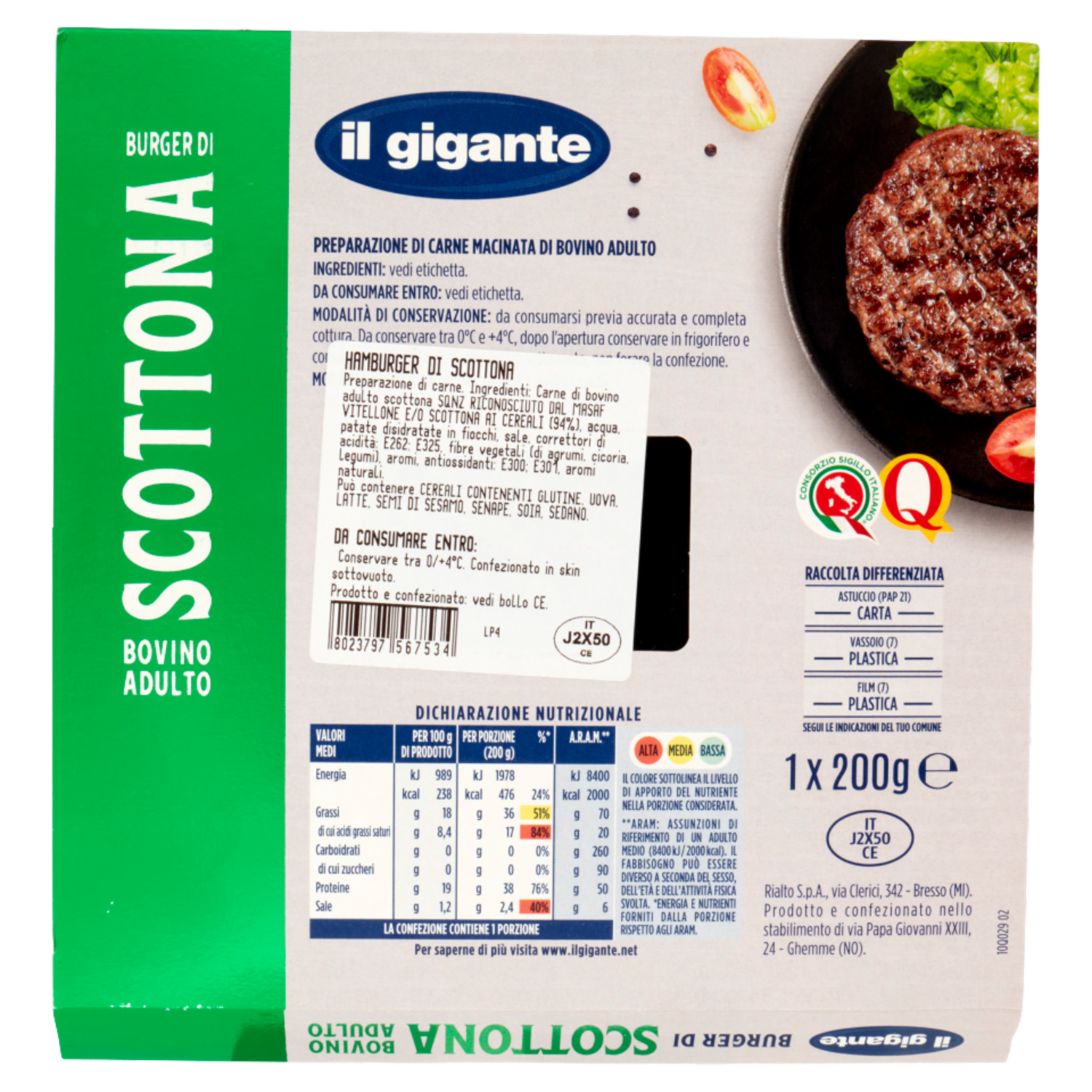 IL GIGANTE Burger di Scottona Bovino Adulto 200 g