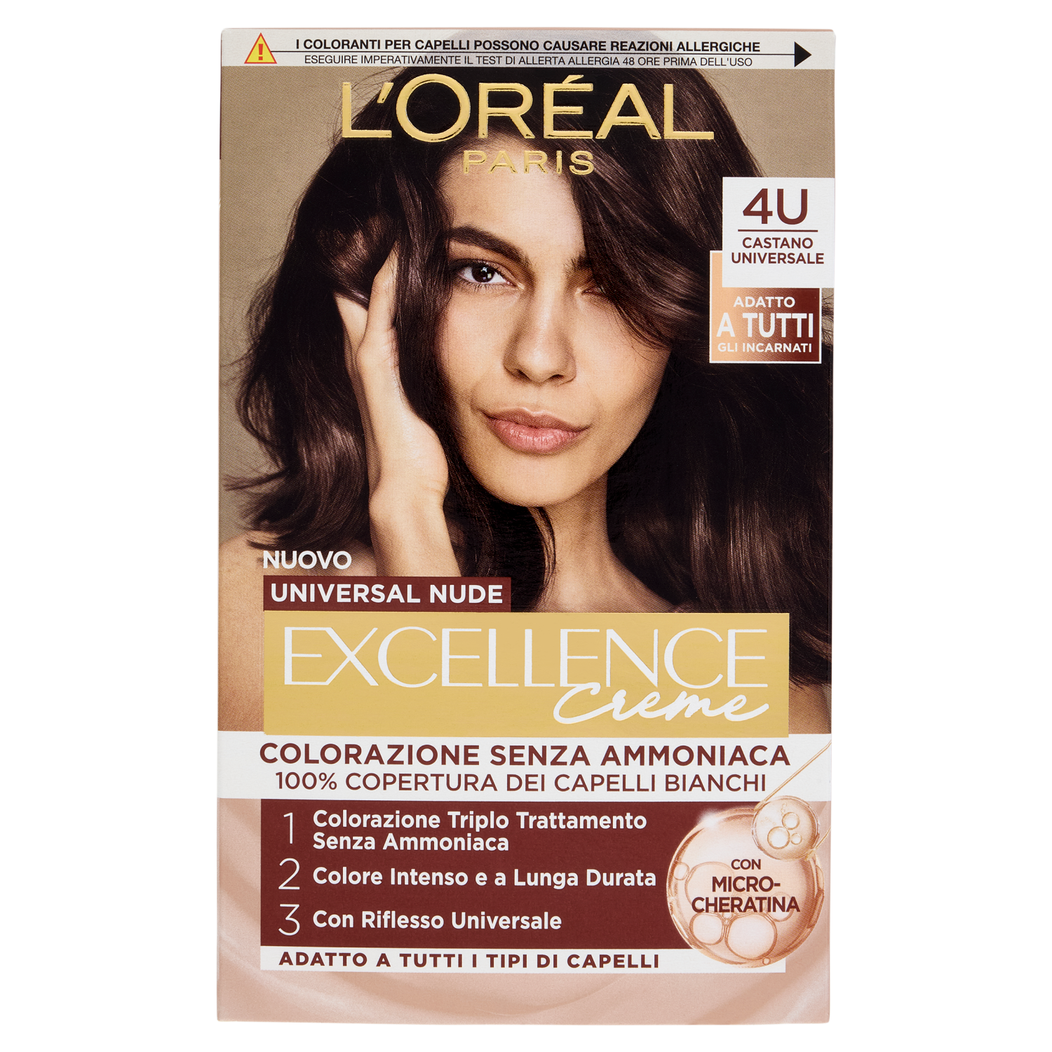 L'Oréal Paris Excellence Creme Universal Nude Colorazione Senza Ammoniaca 4U Castano Universale