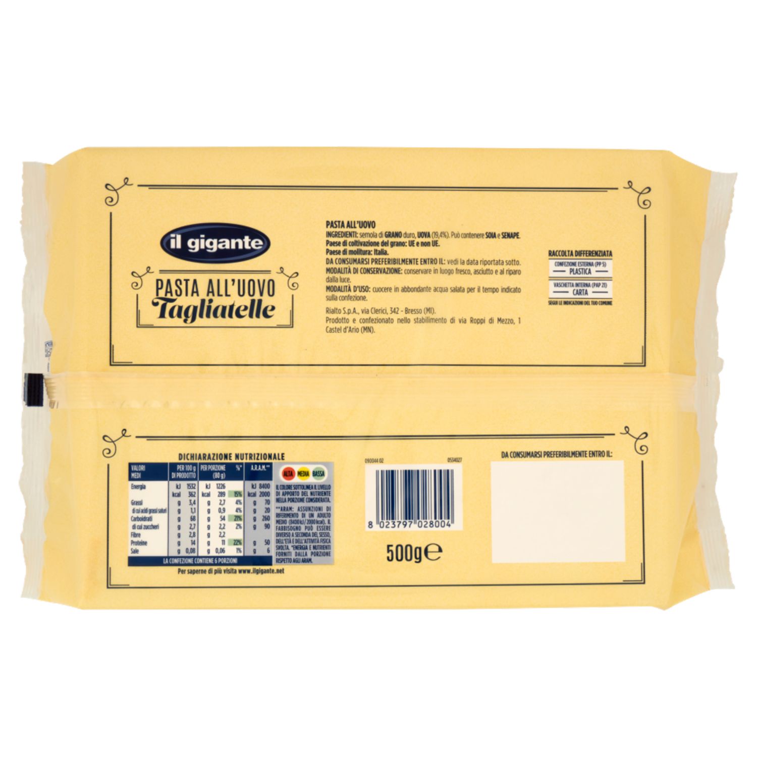 IL GIGANTE Pasta all'Uovo Tagliatelle 500 g