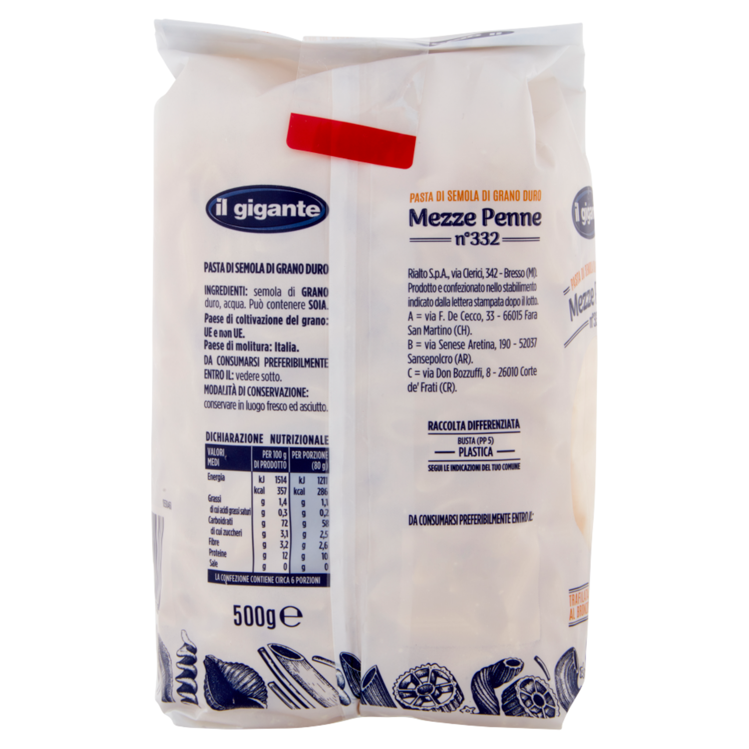 IL GIGANTE Mezze Penne n°332 500 g