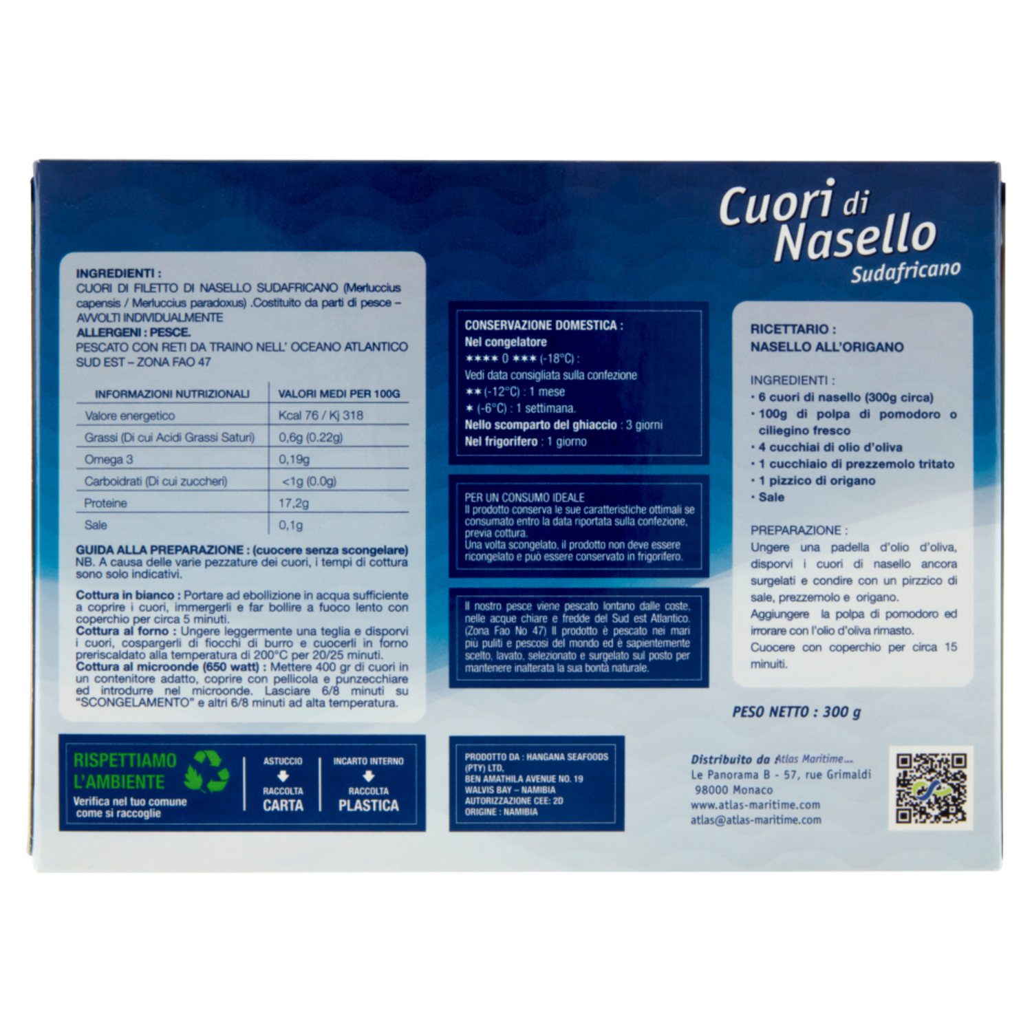 Prodotto da: Hangana Seafoods (PTY) Ltd Ben Amathila Avenue no. 19 Walvis Bay Namibia Autorizzazione CEE: 2D