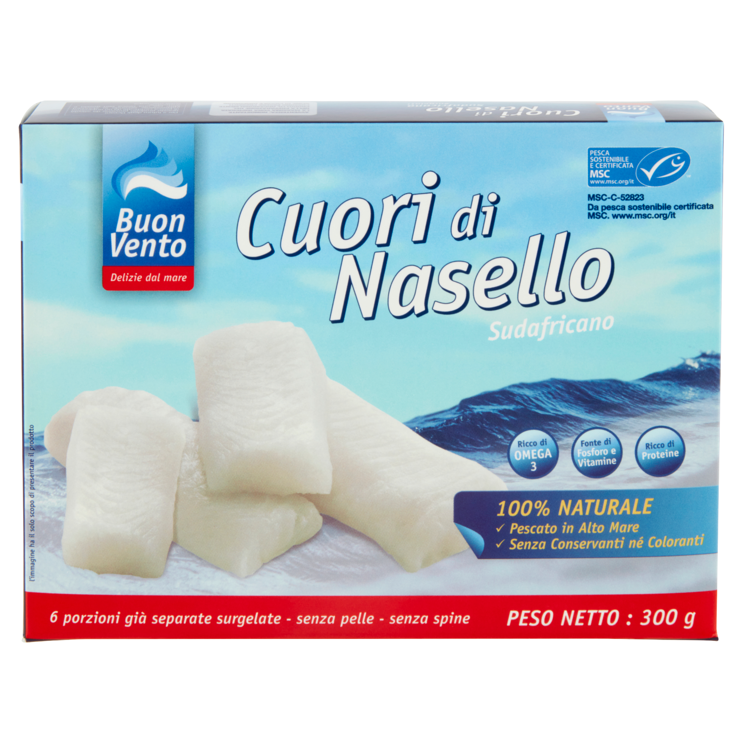 Il nostro pesce viene pescato lontano dalle coste, nelle acque chiare e fredde del Sud est Atlantico. (Zona Fao No 47) Il prodotto è pescato nei mari più puliti e pescosi del mondo ed è sapientemente scelto, lavato, selezionato e surgelato sul posto per mantenere inalterata la sua bontà naturale.